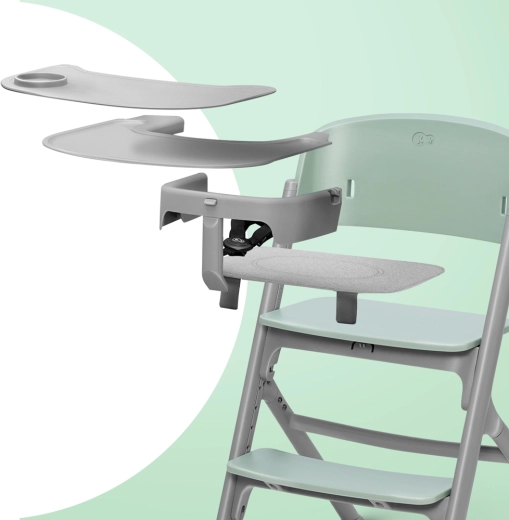 Für Sicherheit sorgen 5-Punkt-Gurte mit verstellbarer Länge und eine robuste, stabile Konstruktion aus Stahl und Aluminium mit breitem Beinstellwinkel. Das große, praktische Tablett mit rutschfestem Silikon-Einsatz (BPA-frei) ist spülmaschinengeeignet. Die Wippe CALMEE kann am Stuhl befestigt werden, um eine hohe Babywippe zu schaffen, damit Ihr Baby stets auf Augenhöhe ist.