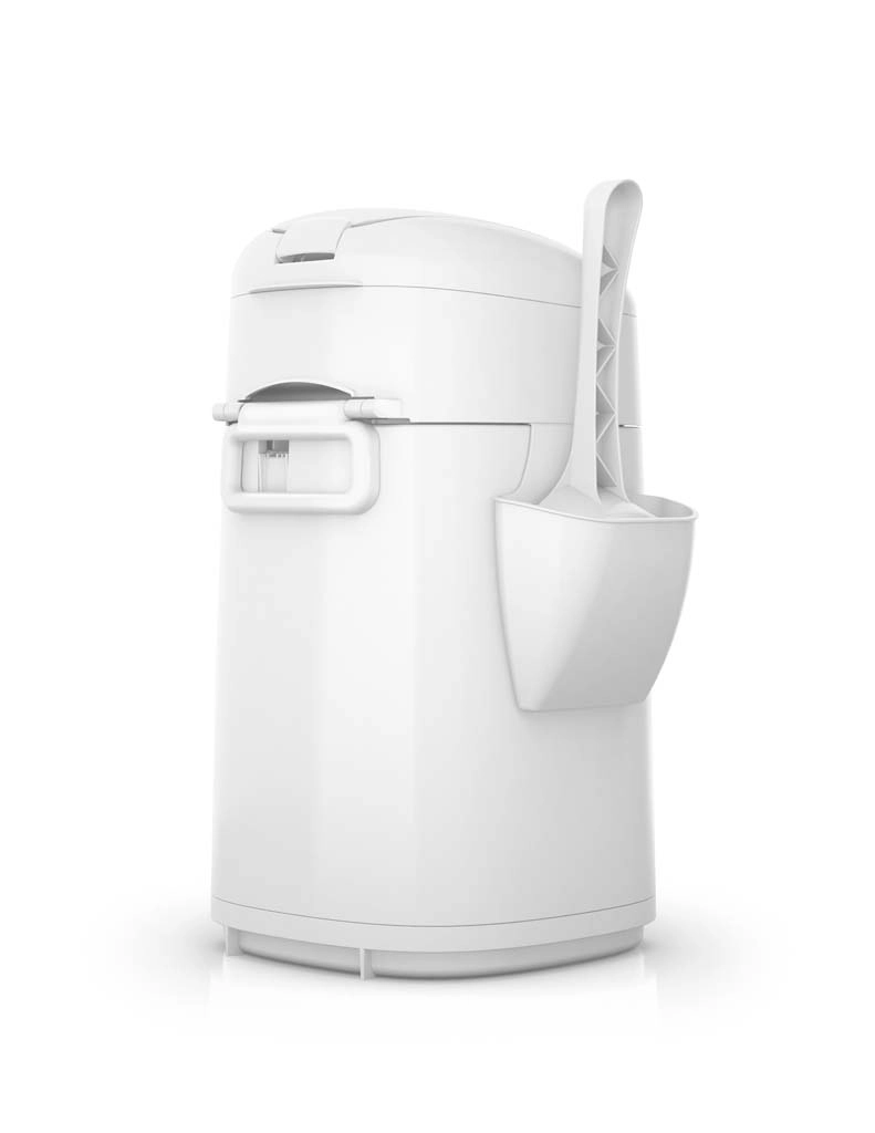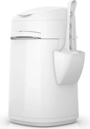Praktische Details erleichtern die tägliche Nutzung: ein abnehmbarer Deckel für einfache Reinigung, ein integriertes Sicherheitsmesser zum Abtrennen der Folie und ein bequemer Tragegriff für den Transport. Dank des großen Fassungsvermögens reicht die Nachfüllkassette in einem Haushalt mit einer Katze bis zu 2 Monate. Das Design lässt sich mit 4 stilvollen Bezügen (separat erhältlich) an jedes Interieur anpassen.