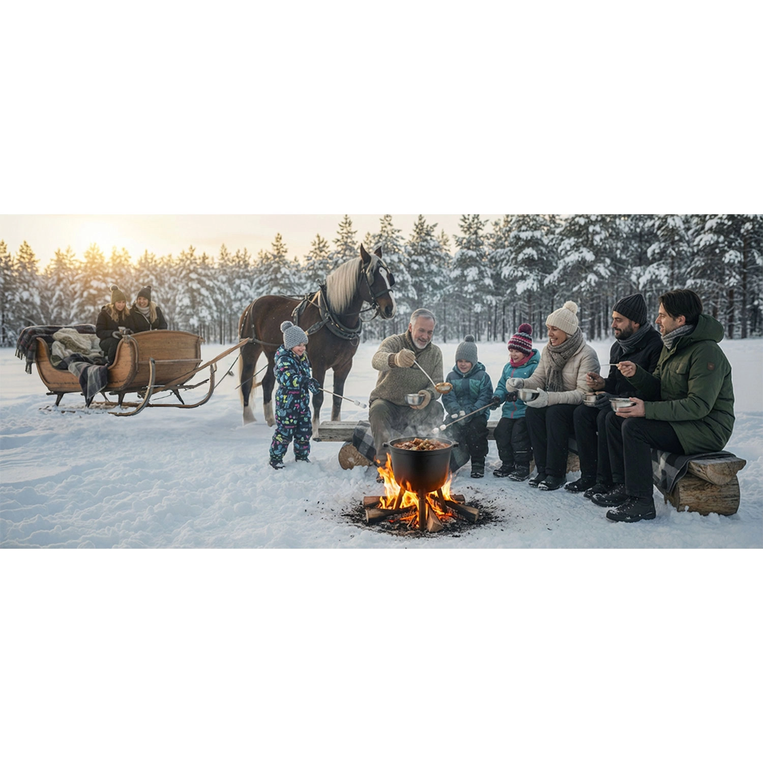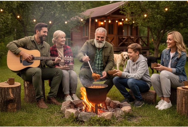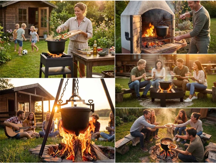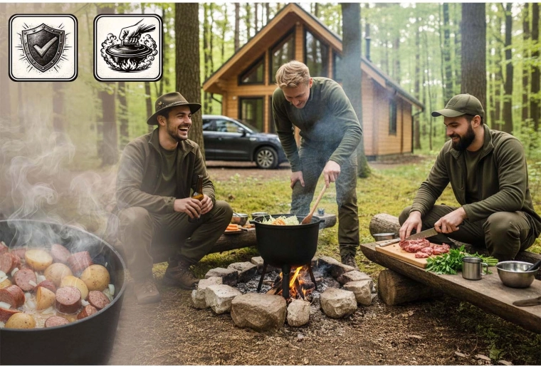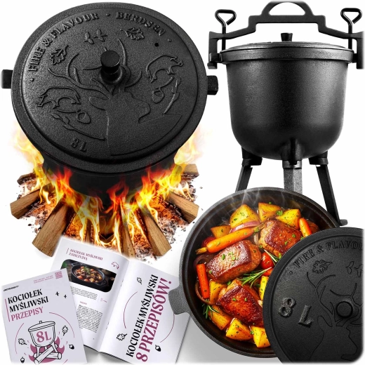 Inbegriffen ist ein Set praktischer Rezepte – von Gulasch und Spießen im Kessel bis hin zu kräftigen Wintersuppen. Legen Sie gleich los und genießen Sie gemeinsames Kochen am Feuer.