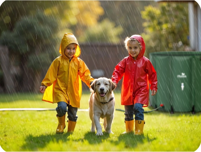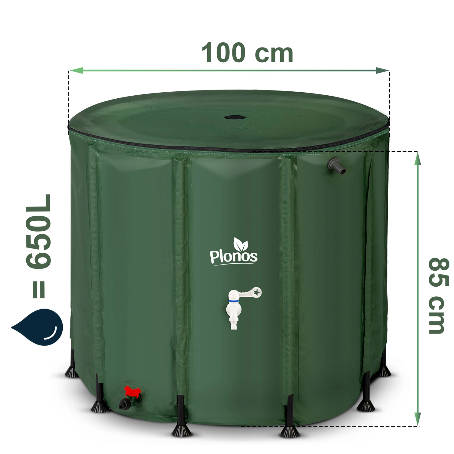 Sammeln und nutzen Sie kostenloses Regenwasser für Garten, Gewächshaus und Rasen. Der faltbare Regensammeltank Plonos 650 l bietet hohe Kapazität, komfortable Dosierung über den vorderen Hahn und schnelles Ablassen dank des unteren Ventils. Durch den Anschluss an die Dachrinne und die obere Öffnung mit Sieb bleibt das Wasser sauberer, frei von Blättern und Verunreinigungen.