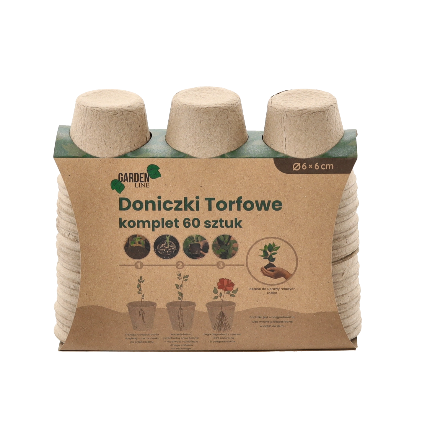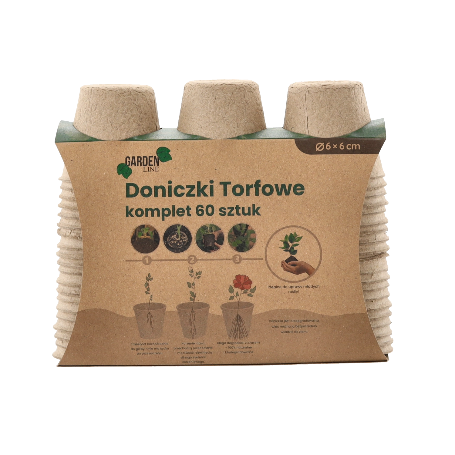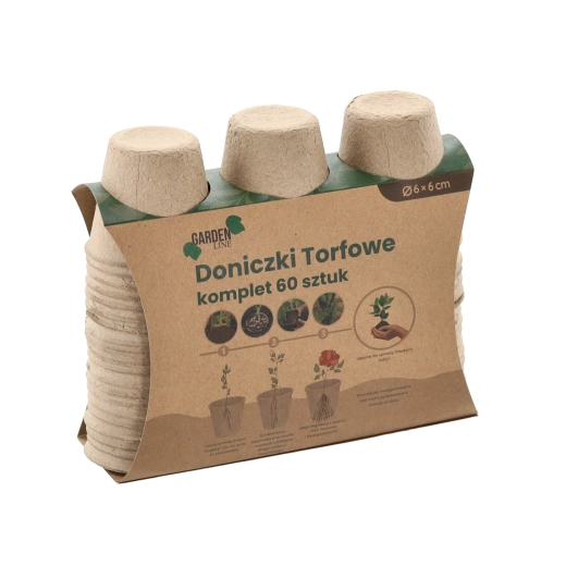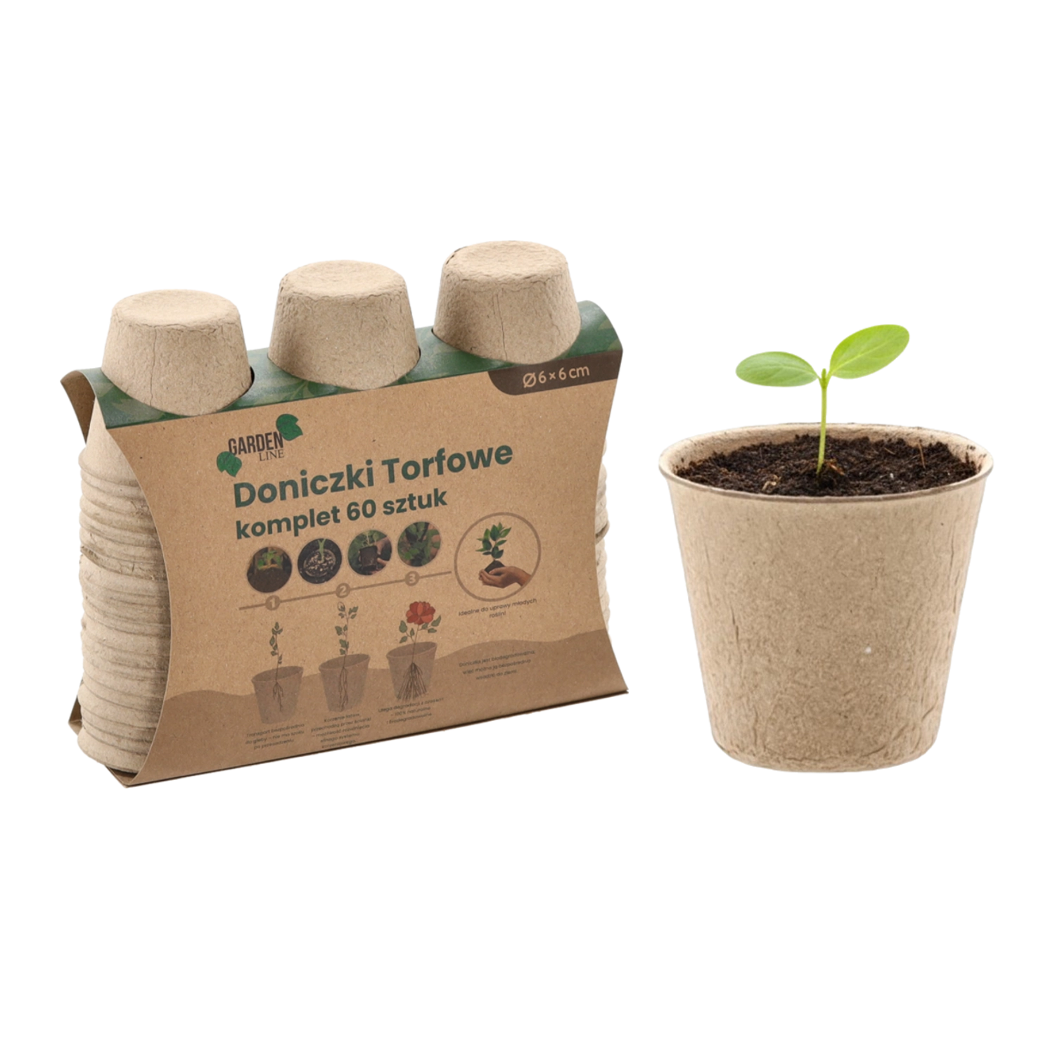 Praktisches Set aus 60 Torftöpfen 6 × 6 cm für die Vorkultur von Setzlingen. Sie sind 100 % biologisch abbaubar, lassen Luft und Wasser durch und ermöglichen stressfreies Umpflanzen – die Pflanze wird samt Topf direkt in die Erde gesetzt. Ideal für Gemüse, Kräuter und Blumen, für umweltfreundlichen Anbau zu Hause, auf dem Balkon und im Gewächshaus.