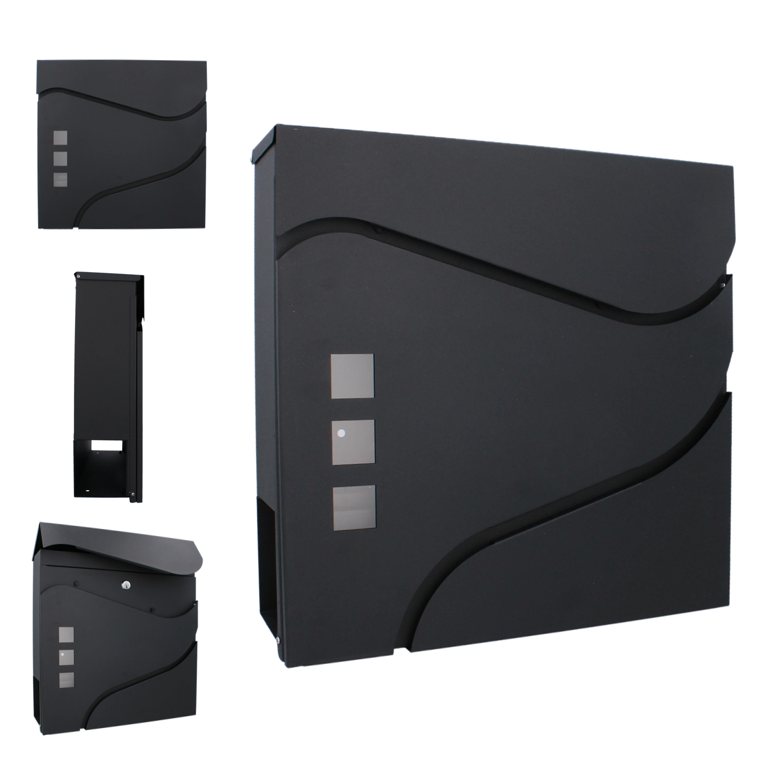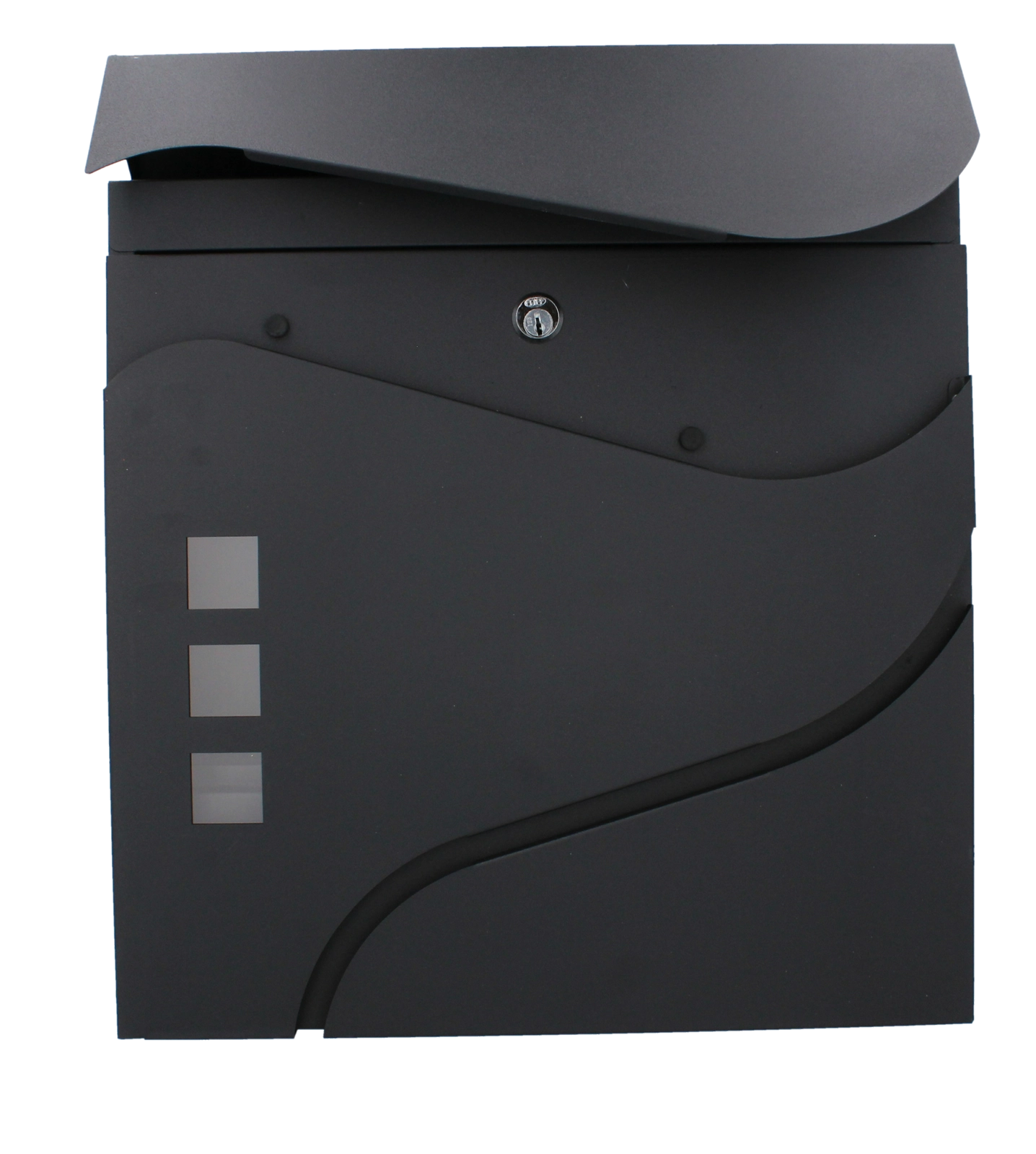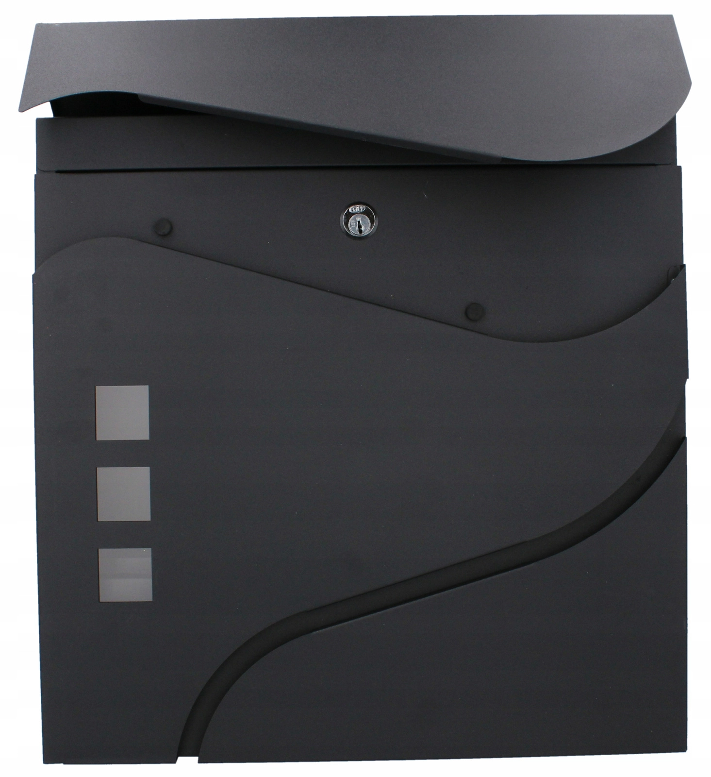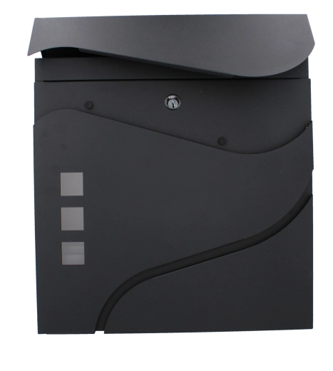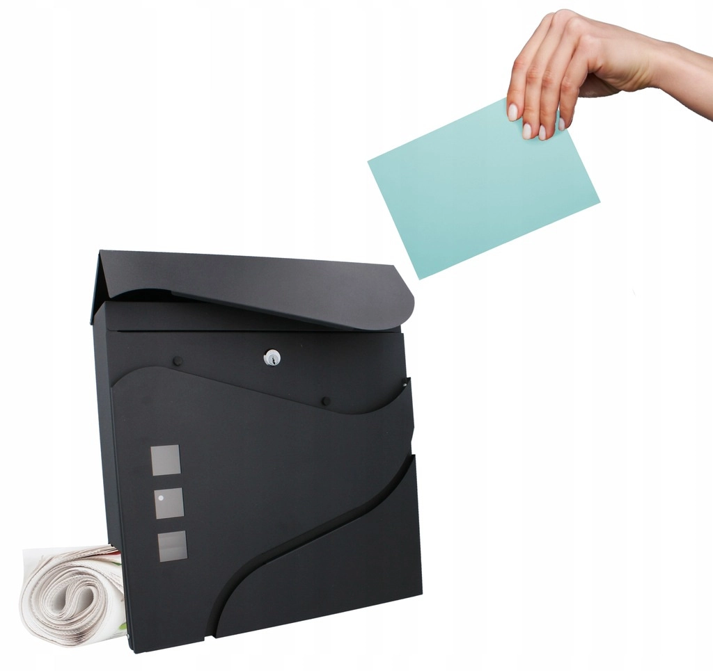 Das elegante, minimalistische Design mit sanften Linien und drei Sichtfenstern ergänzt moderne Fassaden. Ein praktisches seitliches oder unteres Zeitungsfach (je nach Variante) ermöglicht die getrennte Aufbewahrung von Drucksachen. Die Wandmontage gelingt dank vorgebohrter Löcher schnell.