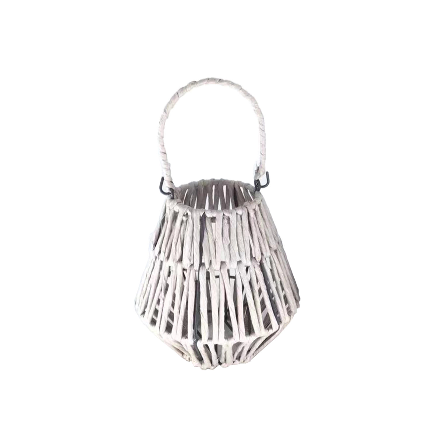 Dank der luftigen Gitterflechtung lässt sie Licht wunderschön durch und zeichnet feine Schatten. Der robuste Henkel erleichtert das Tragen oder Aufhängen. Das minimalistische Design und die kompakten Maße von 18 × 20 cm machen sie zu einem vielseitigen Accessoire für ganzjährige Dekoration.
