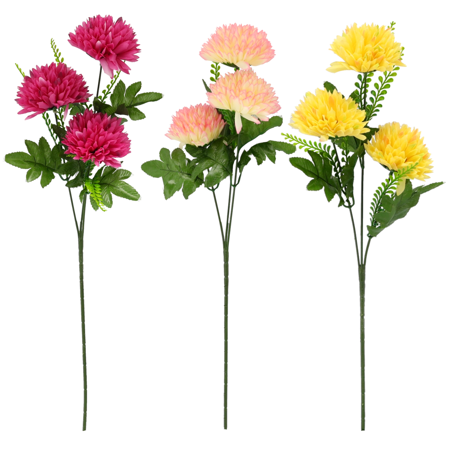 Detailreich gearbeitete Blütenblätter und Blätter imitieren echte Chrysanthemen täuschend echt. Ihre Dekorationen wirken aus jedem Blickwinkel natürlich.