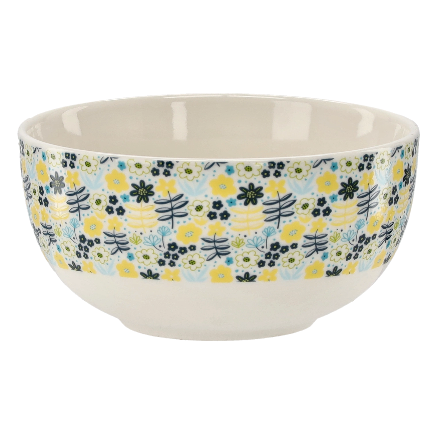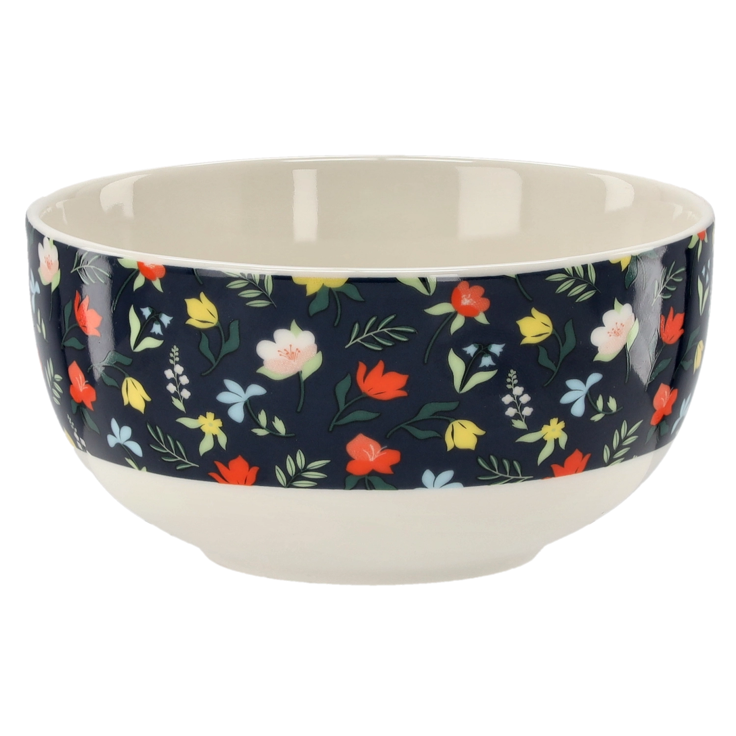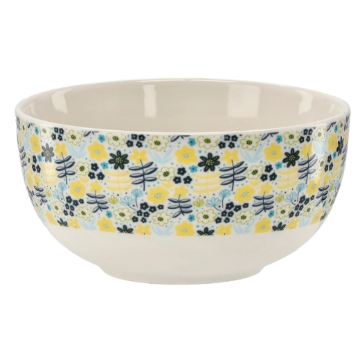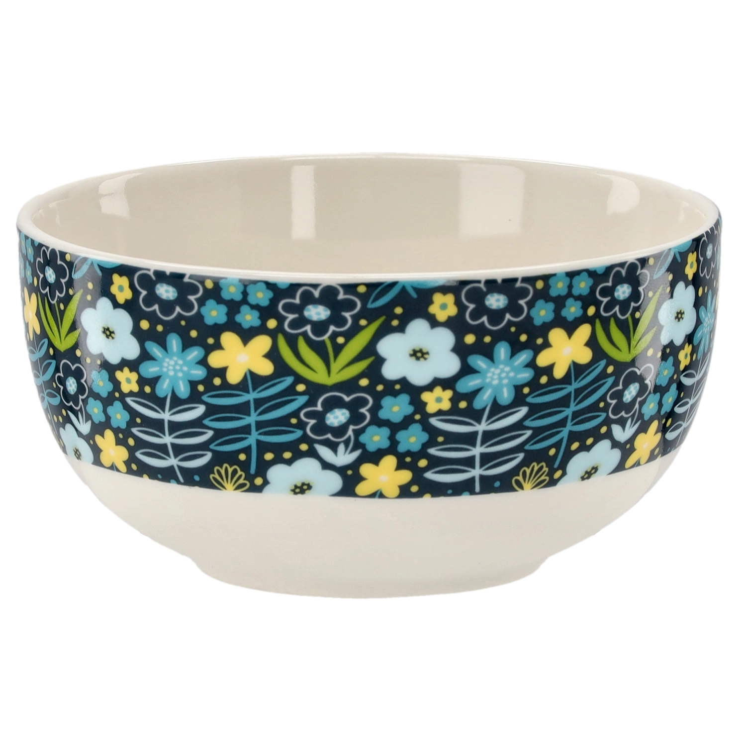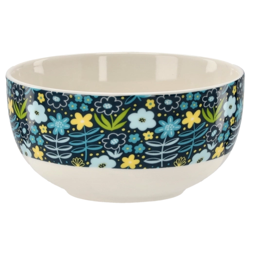 Verleihen Sie Ihrem Tischgedeck Charme mit der Porzellanschüssel mit Blumenmotiv. Die glänzende Oberfläche, das weiße Innere und das breite dekorative Band mit bunten Blüten wirken frisch und zeitlos. Das Volumen von 550 ml ist ideal für morgendliche Cerealien, Suppen, Salate und kleinere Beilagenportionen.