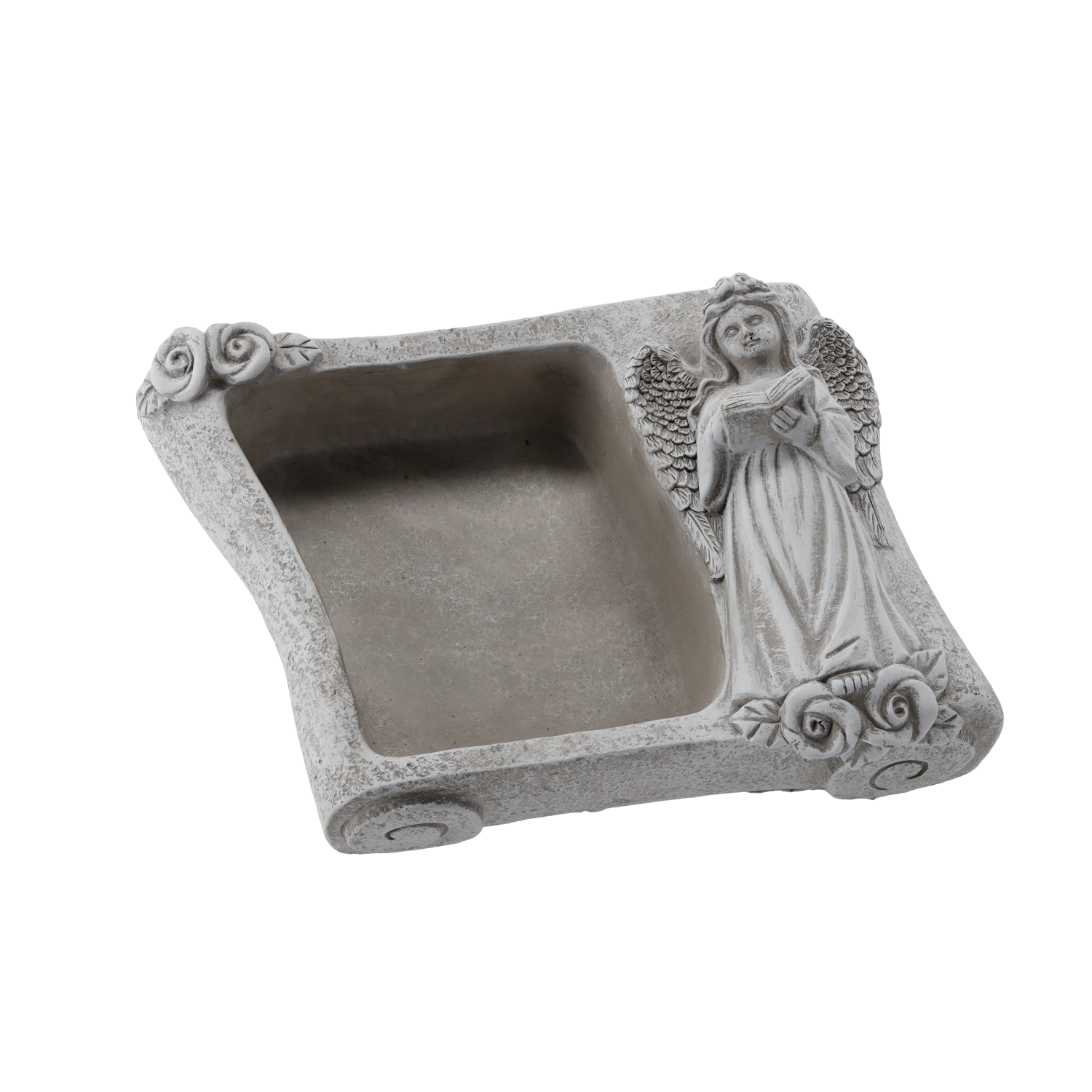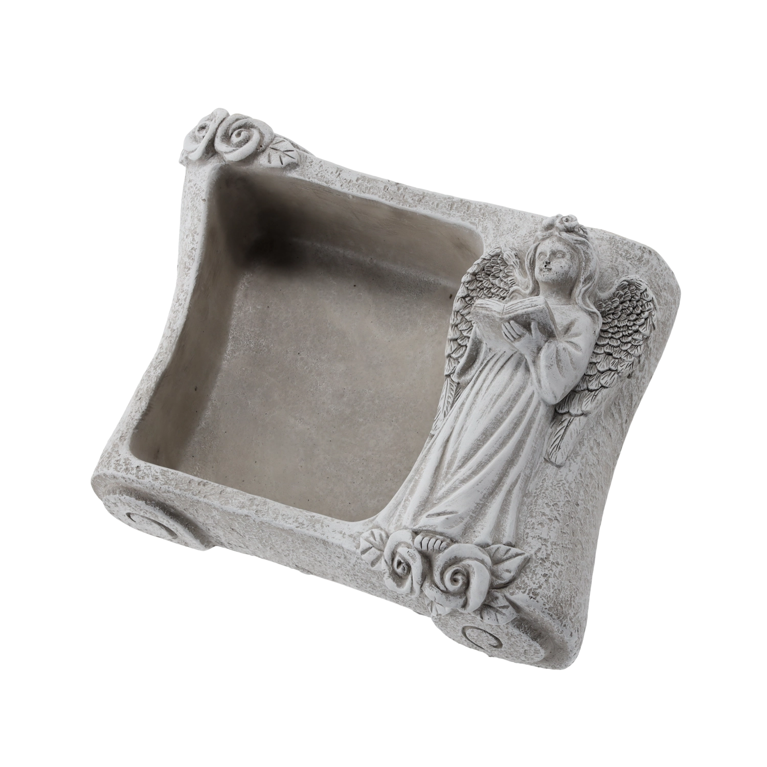 Zement-Blumenschale mit Engel – graues Buch 25 × 18,5 × 9,5 cm