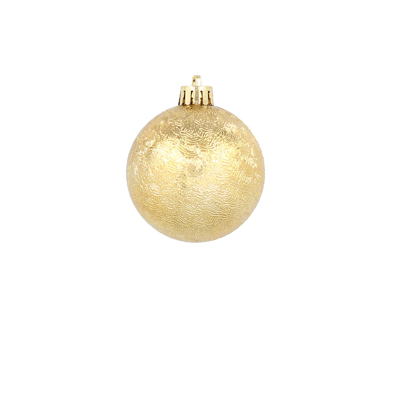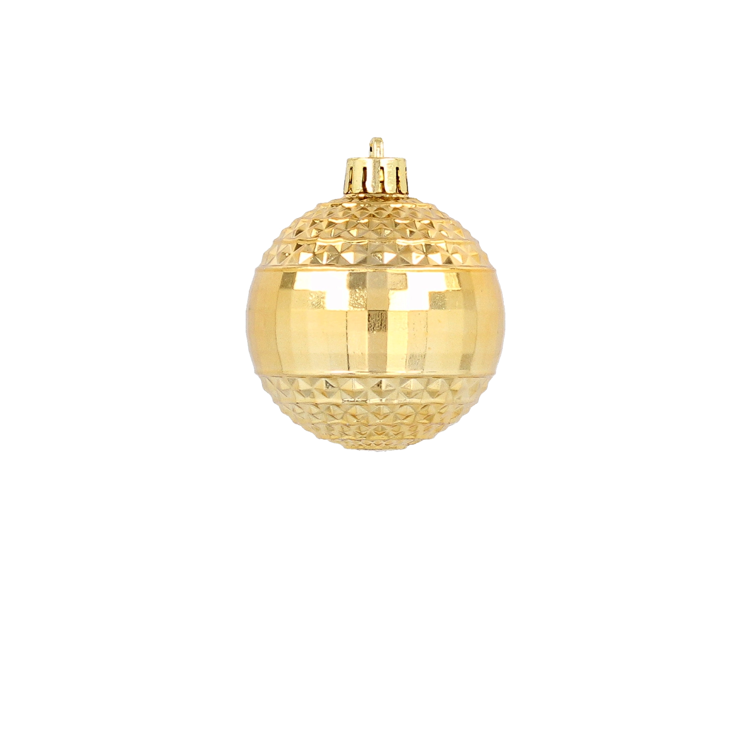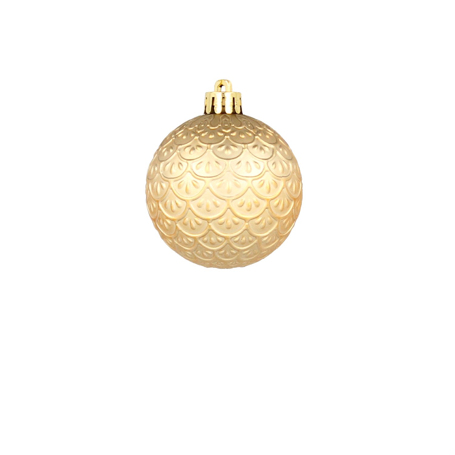 Goldene Ornamente mit einer Mischung aus reliefierten, glitzernden und facettierten Oberflächen verleihen dem Baum warmen Glanz und festliche Noblesse. Das leichte, bruchsichere Material ist sicher und leicht aufzuhängen.