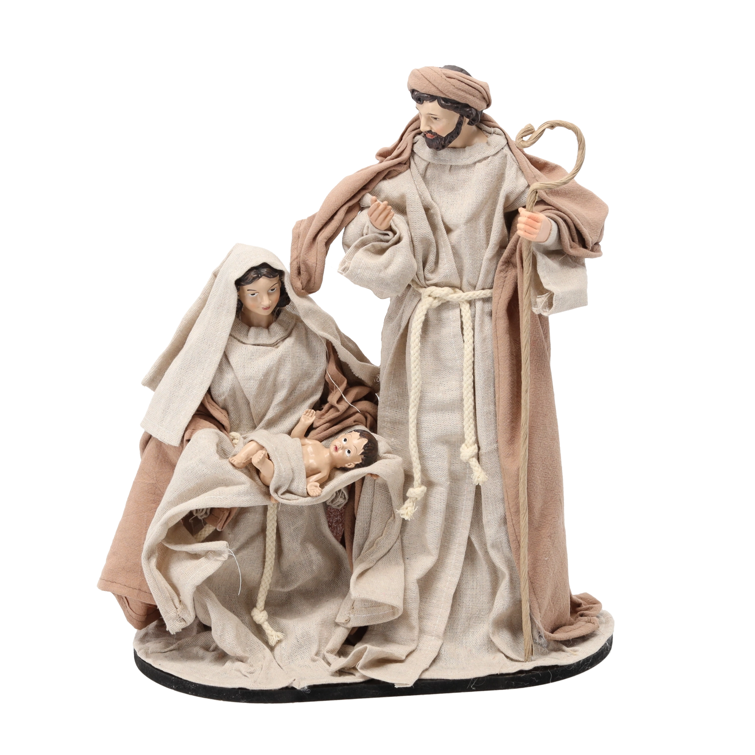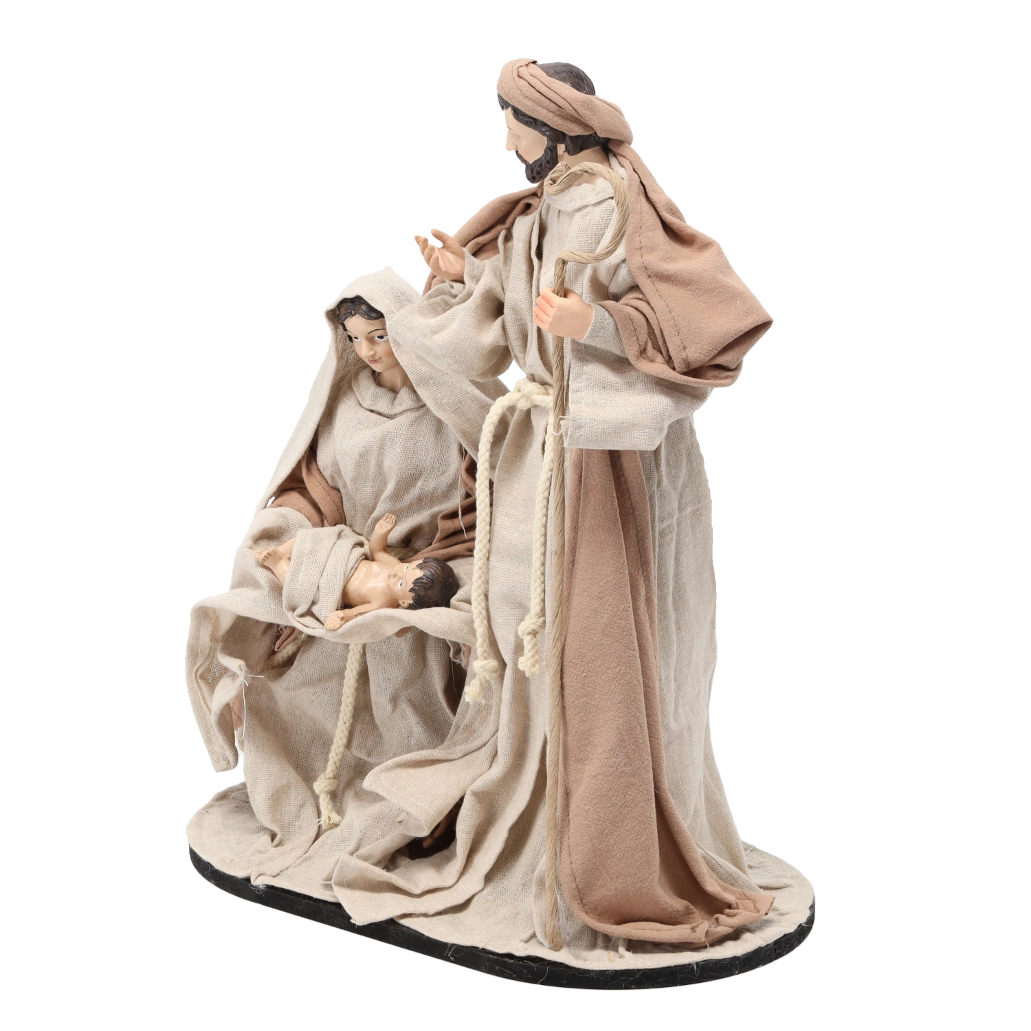 Diese dekorative Figur zeigt Josef, Maria und das Jesuskind in traditioneller Darstellung auf einem stabilen Sockel. Dank der präzisen Details von Gewändern und Mimik wirkt sie realistisch und verleiht dem Interieur Ruhe und Wärme familiärer Weihnachten.
