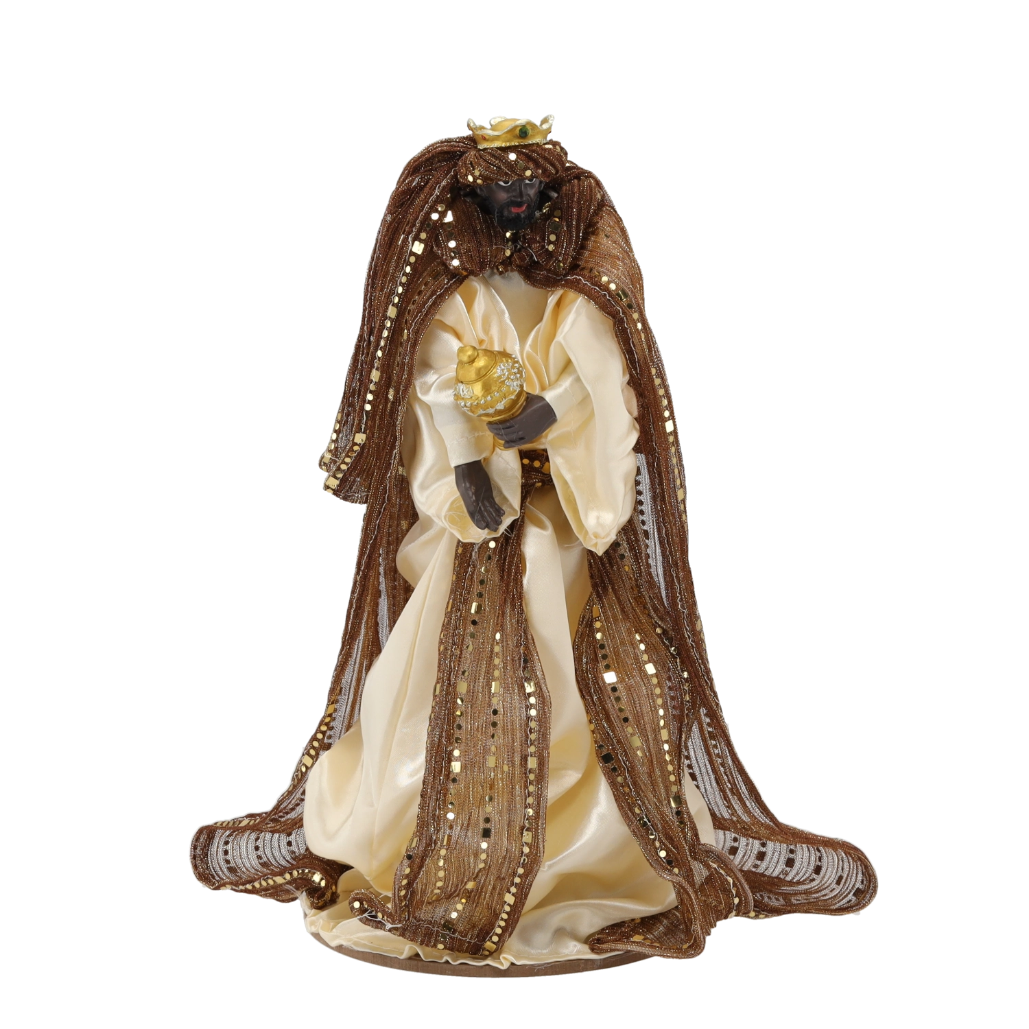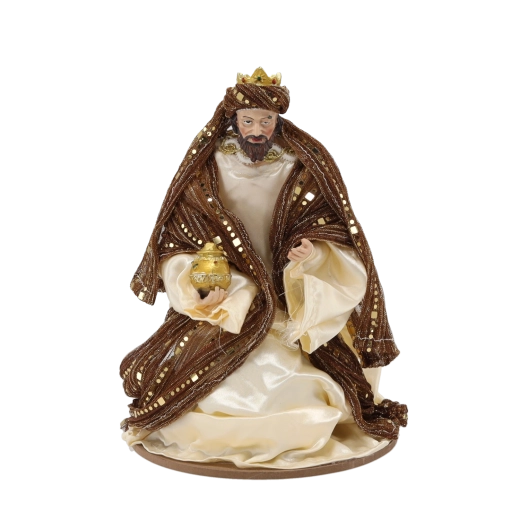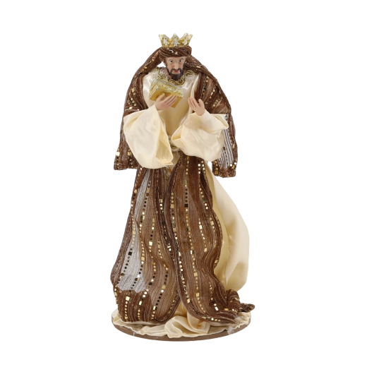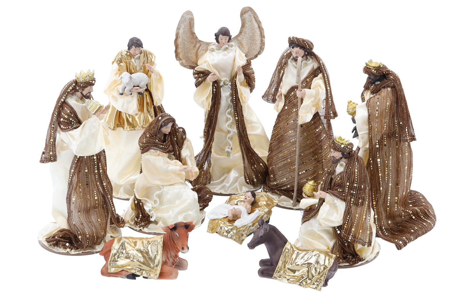 Dieses repräsentative Krippenset umfasst die Heilige Familie, einen Engel, die Heiligen Drei Könige, einen Hirten und zwei Tiere. Figuren in creme- und brauntönen mit goldenen Details wirken elegant und zeitlos und fügen sich sowohl in klassische als auch moderne Interieurs hervorragend ein. Das Harzmaterial gewährleistet eine lange Lebensdauer und Stabilität.
