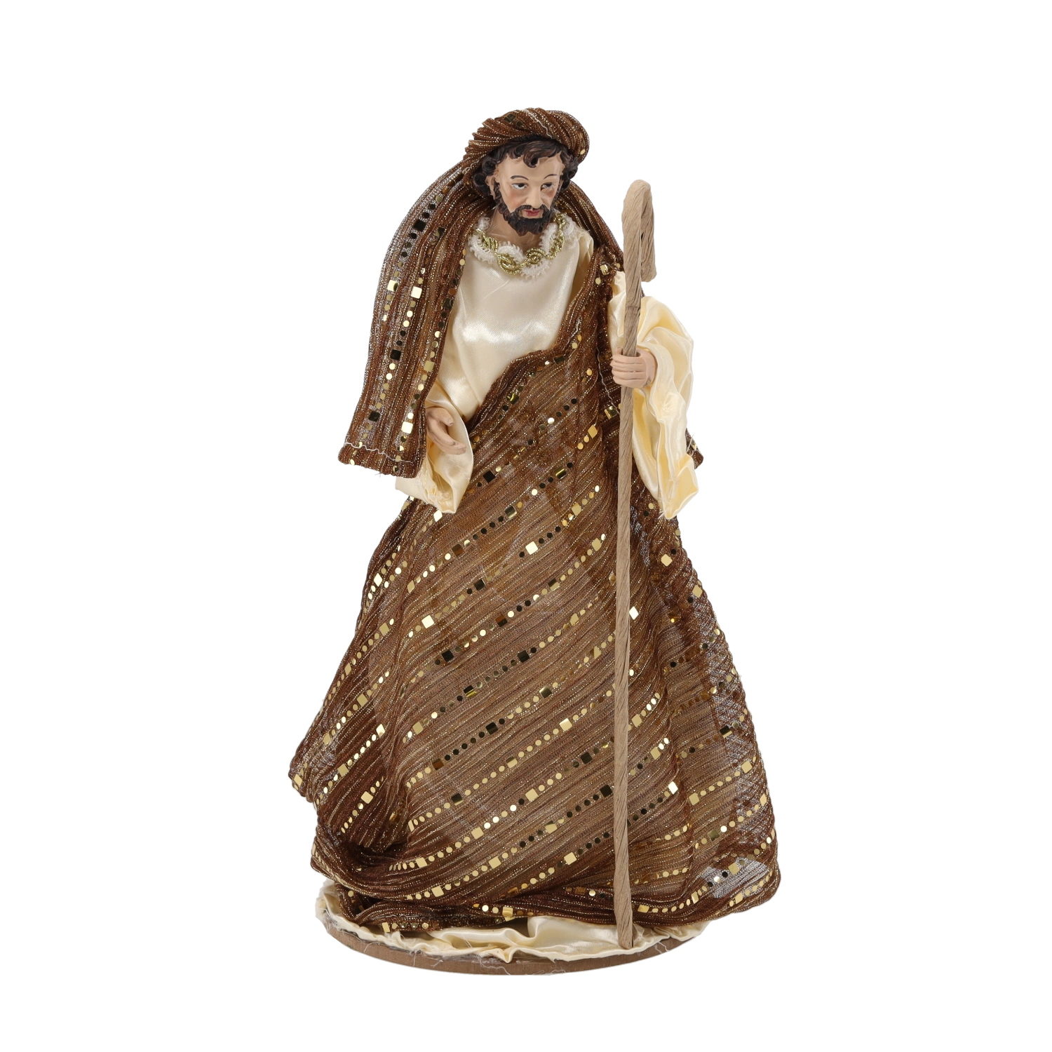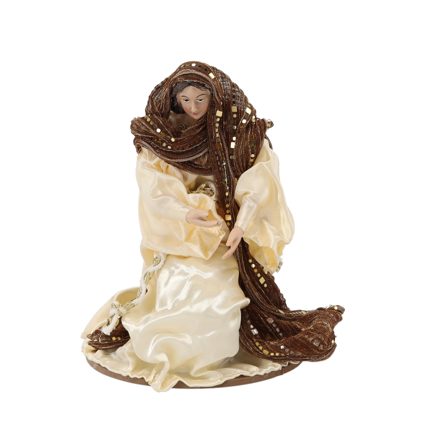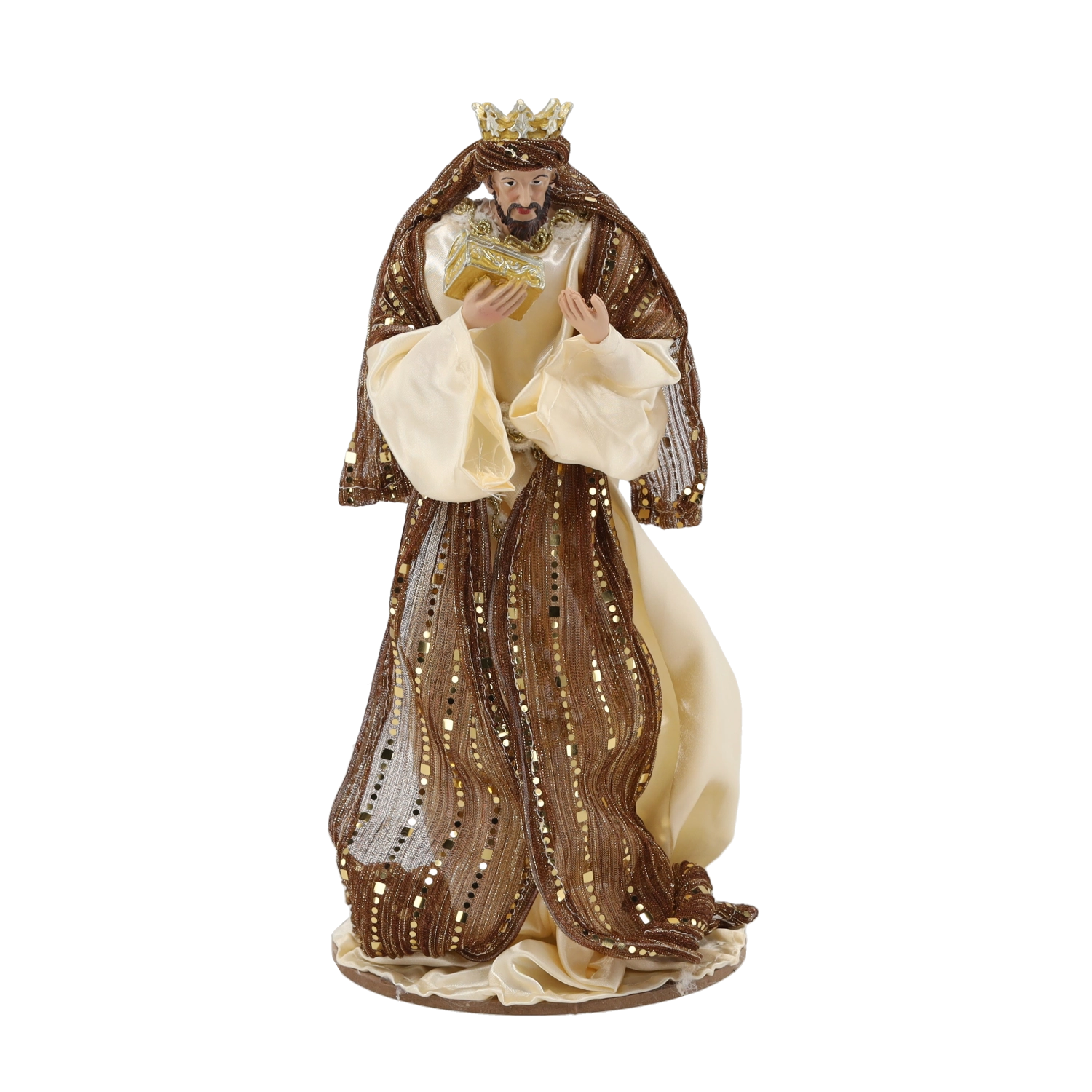 Dieses repräsentative Krippenset umfasst die Heilige Familie, einen Engel, die Heiligen Drei Könige, einen Hirten und zwei Tiere. Figuren in creme- und brauntönen mit goldenen Details wirken elegant und zeitlos und fügen sich sowohl in klassische als auch moderne Interieurs hervorragend ein. Das Harzmaterial gewährleistet eine lange Lebensdauer und Stabilität.