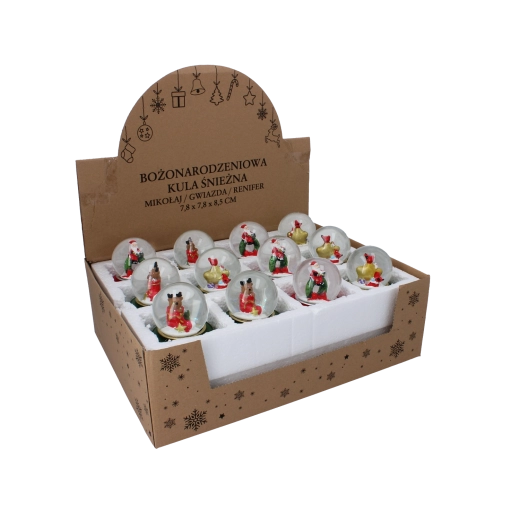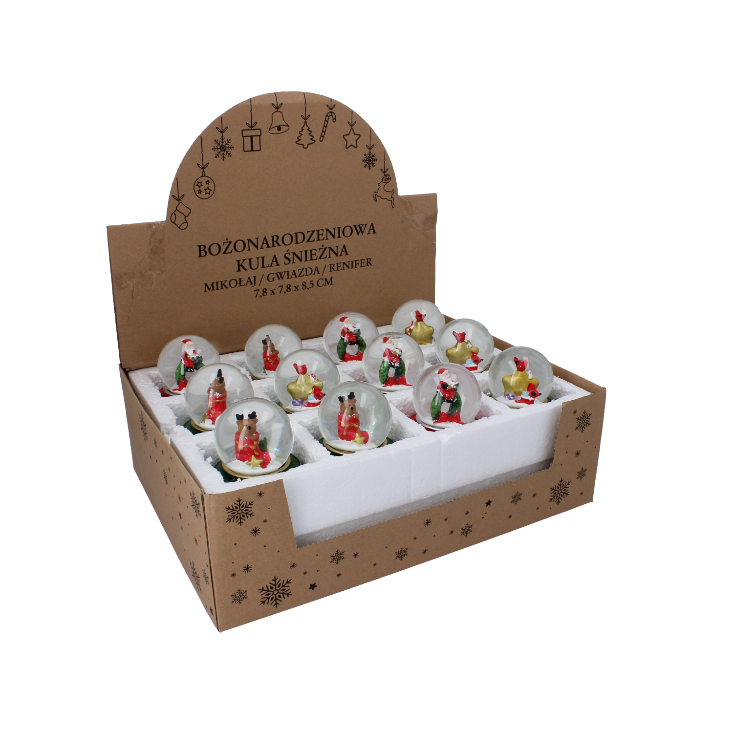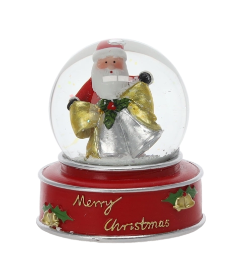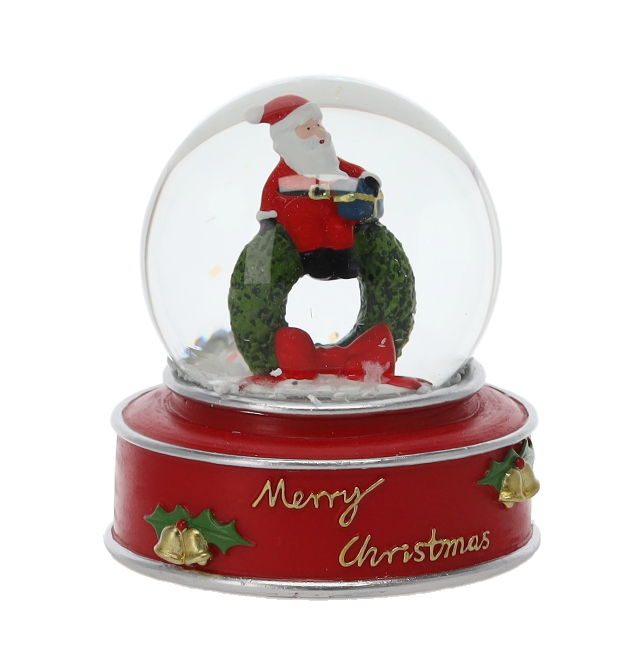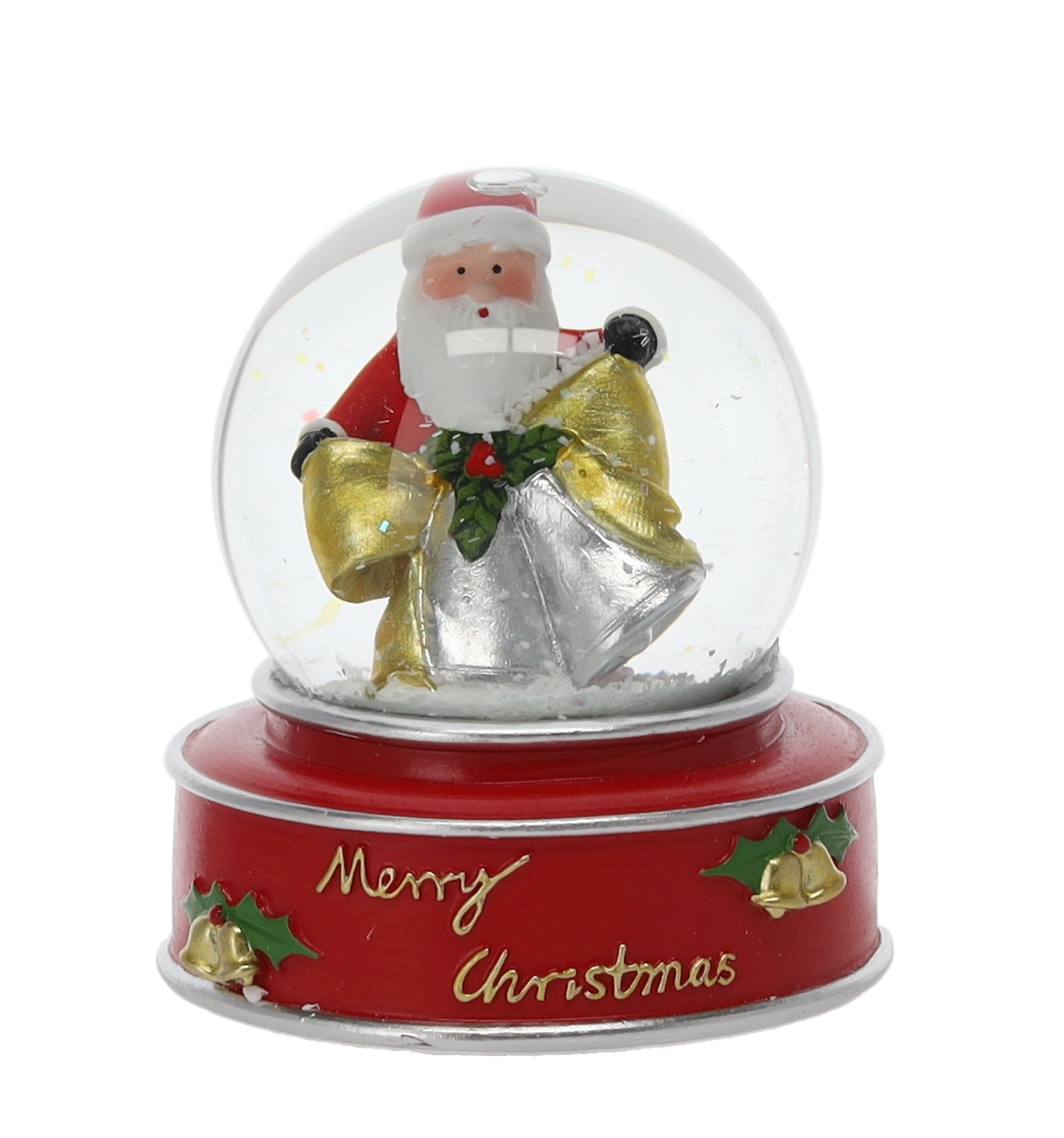 Stilvolle weihnachtliche Schneekugel mit Glaskuppel und stabilem, farbigem Sockel mit der Aufschrift „Merry Christmas“ verleiht Ihrem Interieur sofort festliche Atmosphäre. Nach dem Schütteln entsteht der Effekt fallenden Schnees, der die detaillierten Figuren vom Weihnachtsmann, Stern oder Rentier hervorhebt.