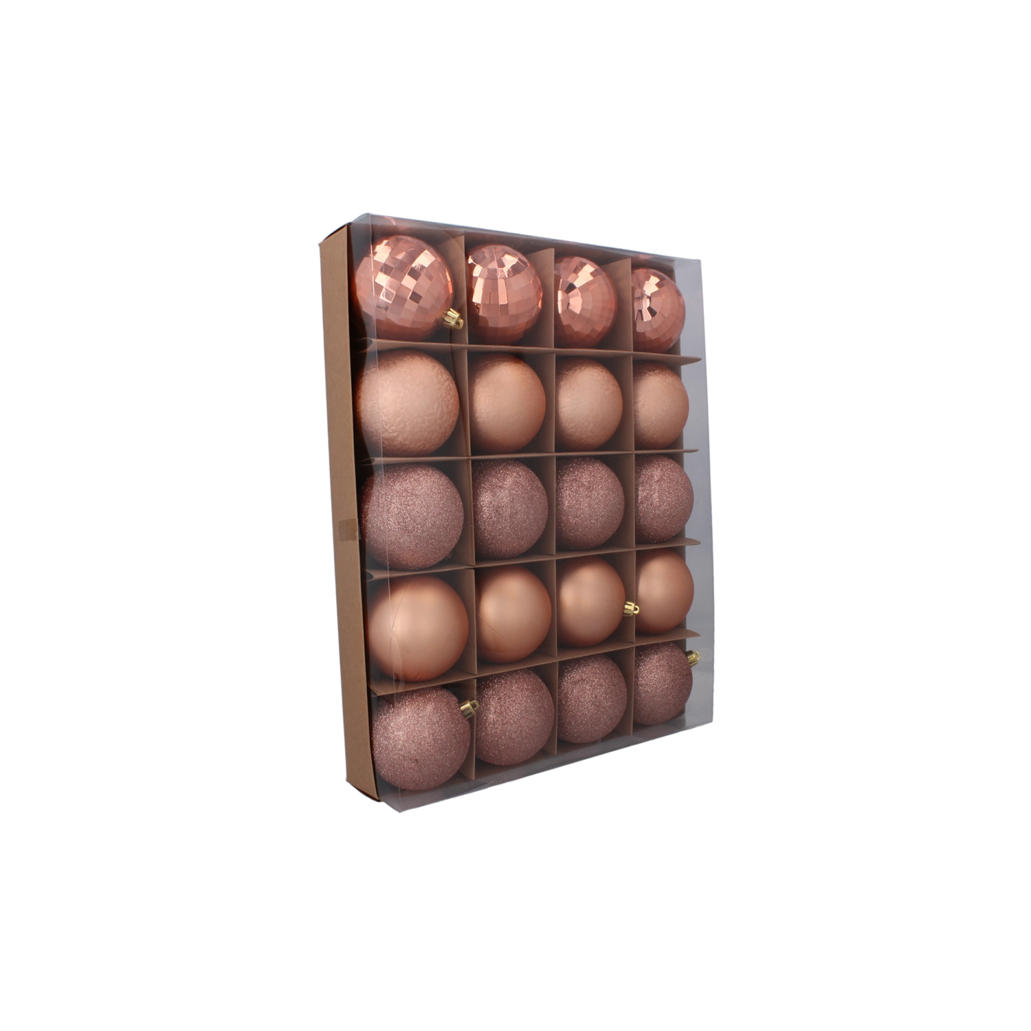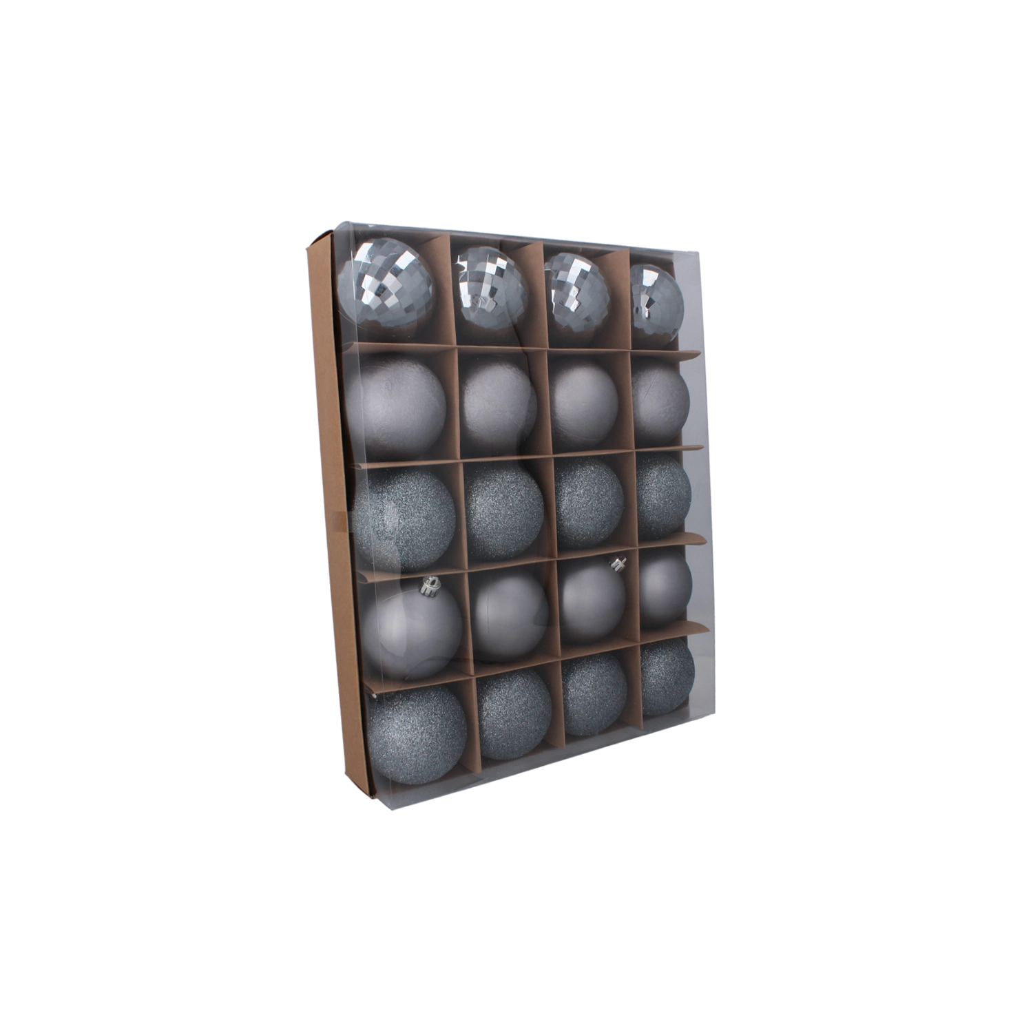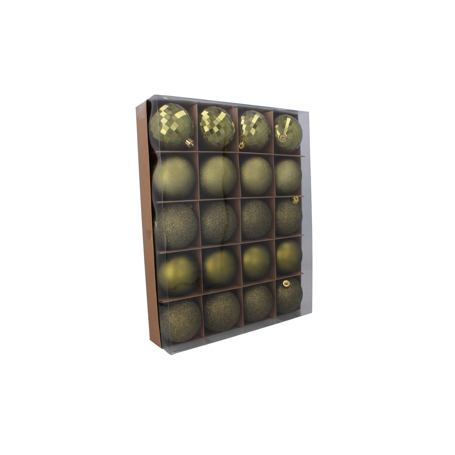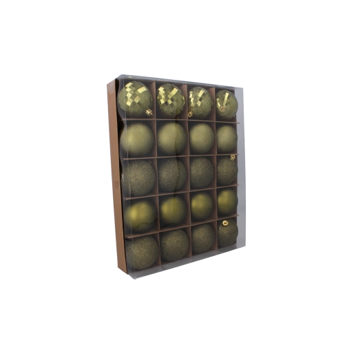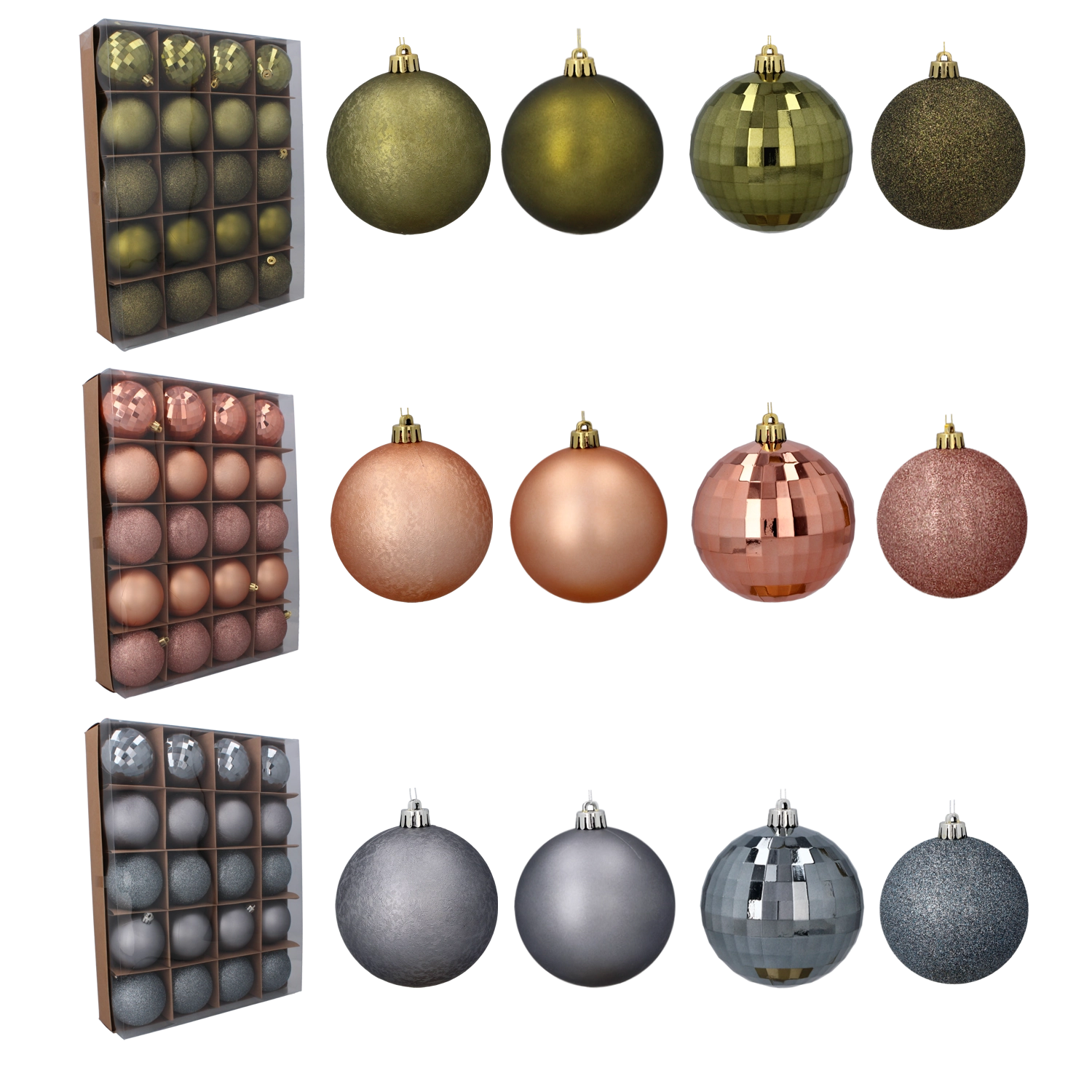 Set aus 20 Weihnachtskugeln 8 cm – olivgrün, kupfer und graphit, Mix aus Oberflächen