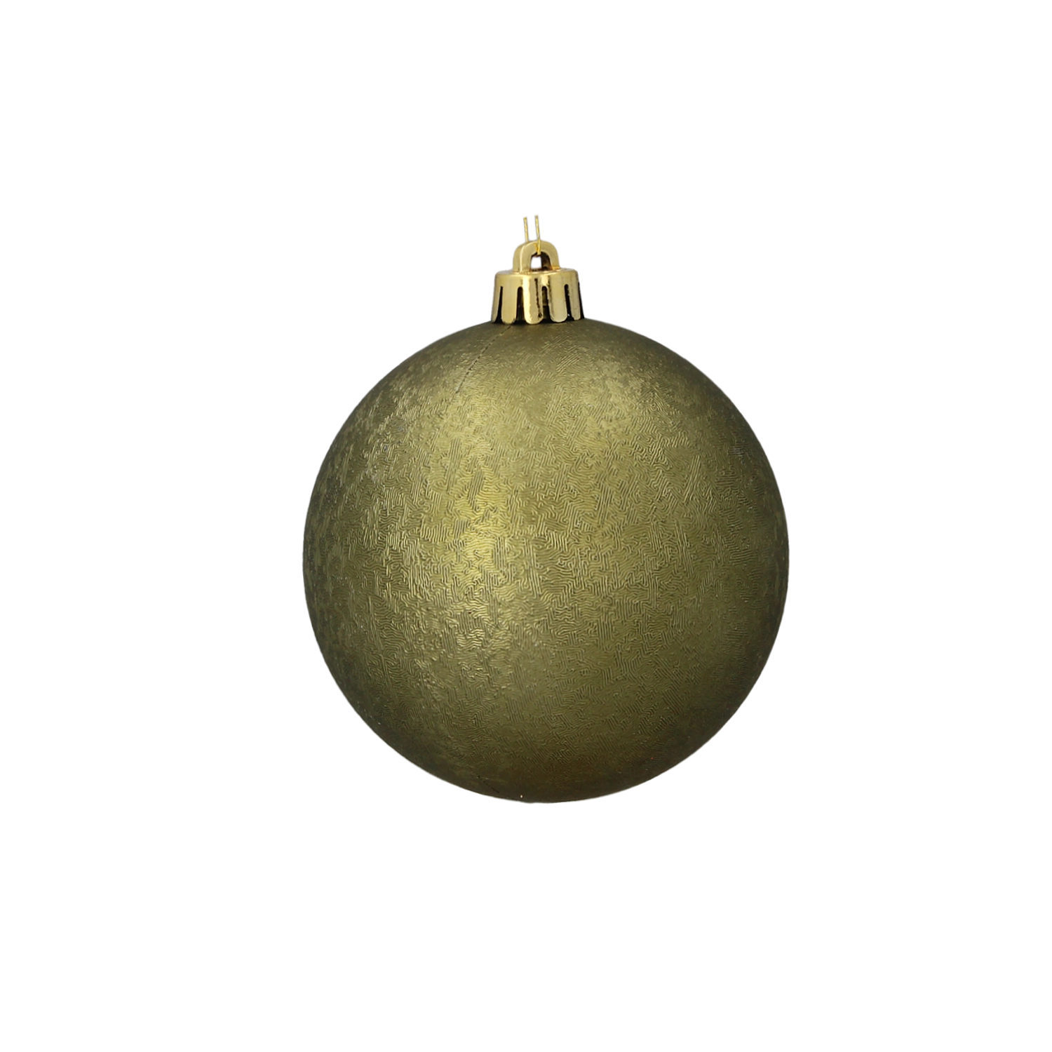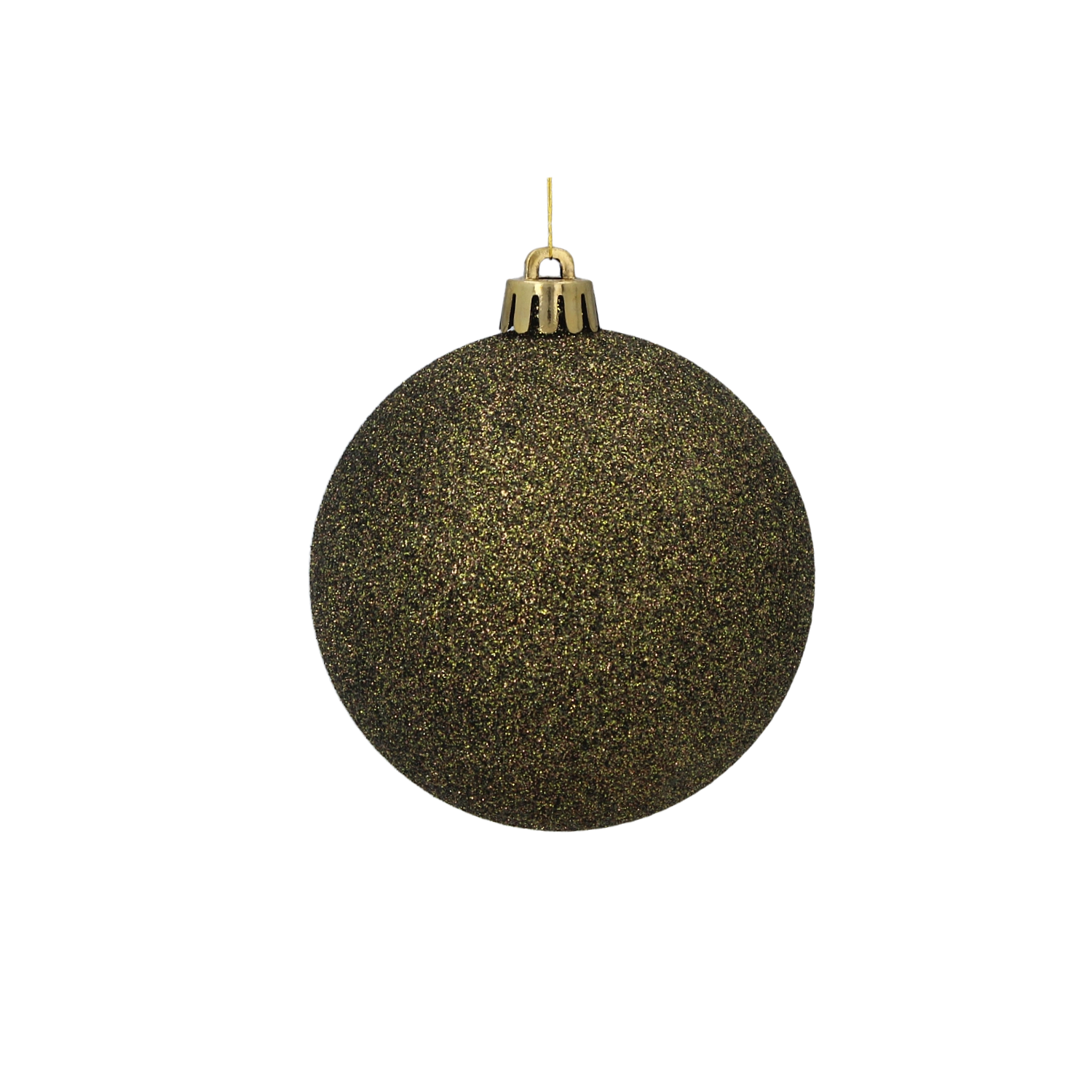 Elegantes Set von Weihnachtsornamenten mit einem Durchmesser von 8 cm, das die Farben Olivgrün, Kupfer und Graphit in verschiedenen Oberflächen vereint. Im Set finden Sie matte, gerippte und glänzende Kugeln, die zusammen eine harmonische und moderne Baumdekoration schaffen.