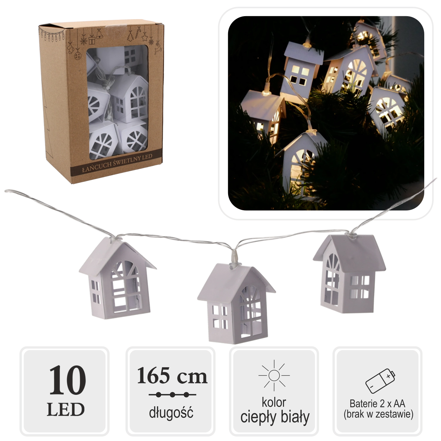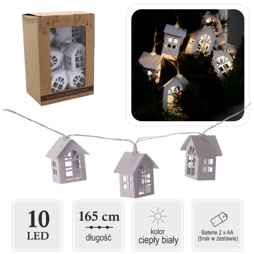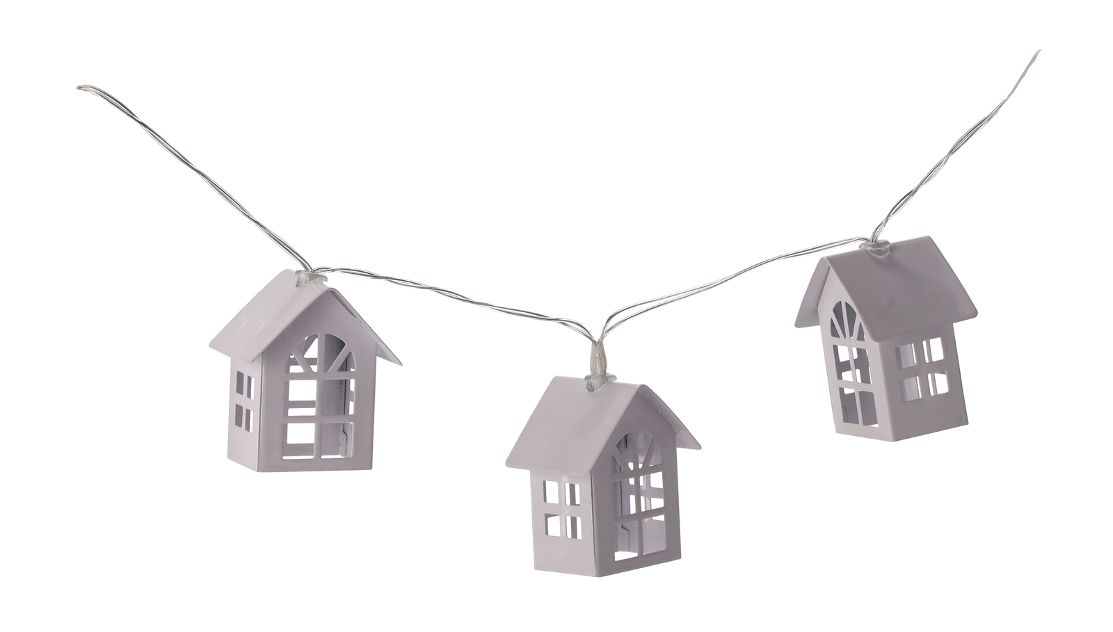 Schaffen Sie eine zauberhafte Atmosphäre mit der Lichterkette mit Metallhäuschen. Jedes Häuschen leuchtet in warmweißem Licht und verleiht Ihrem Interieur eine gemütliche Note. Dank der batteriebetriebenen Stromversorgung können Sie sie überall platzieren – ohne Kabel und Einschränkungen.