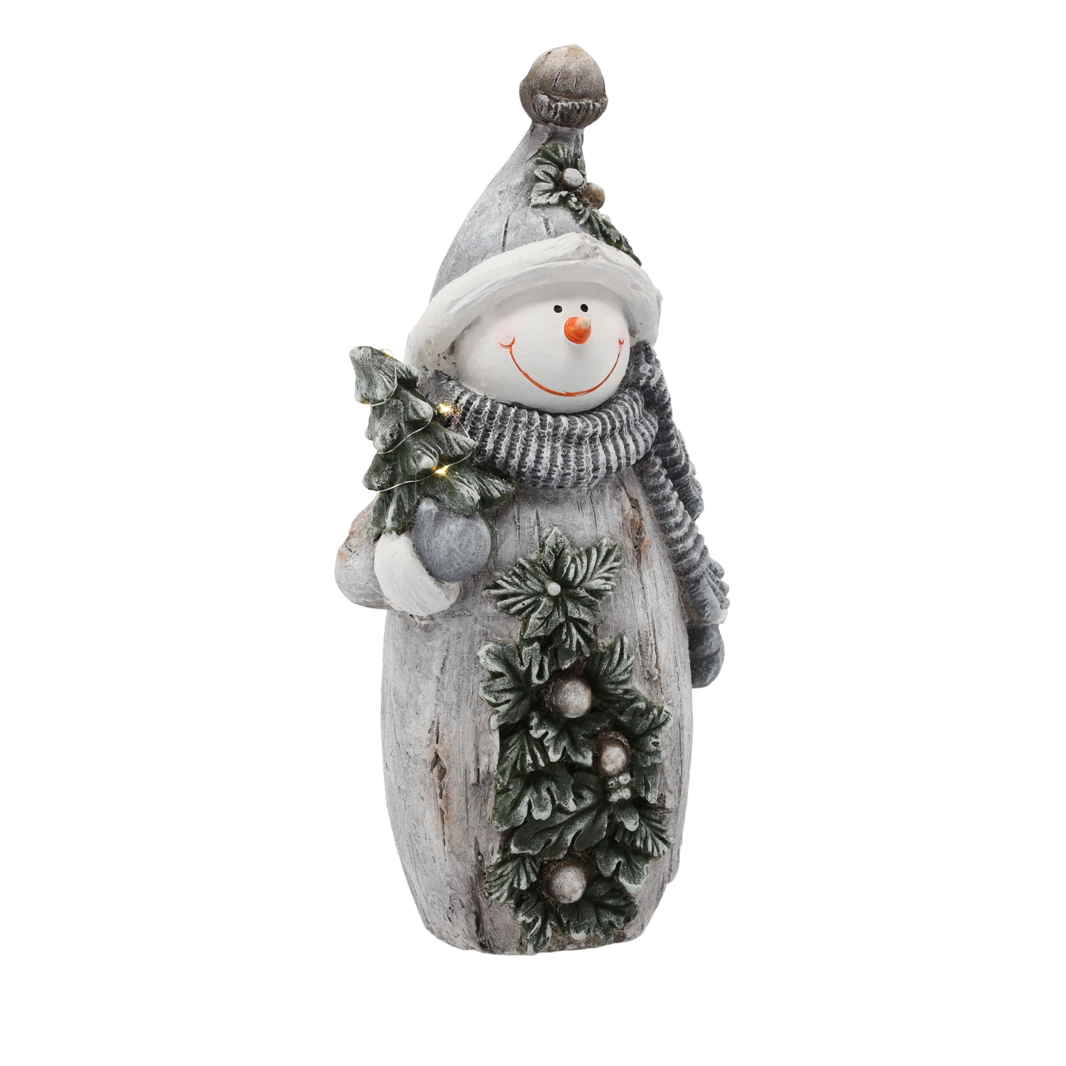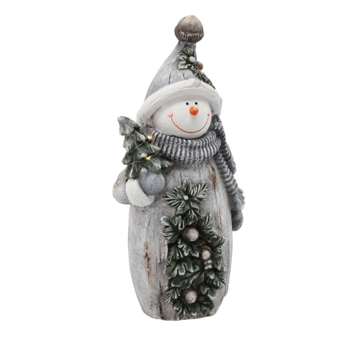 Diese dekorative Weihnachtsfigur des Schneemanns mit geschmücktem Bäumchen zaubert angenehme Lichteffekte und versüßt die Adventszeit. Dank des zeitlosen Designs lässt sie sich leicht mit anderer Dekoration kombinieren und passt sowohl in moderne als auch klassische Interieurs.
