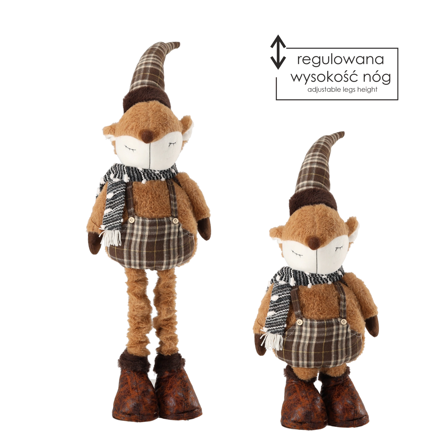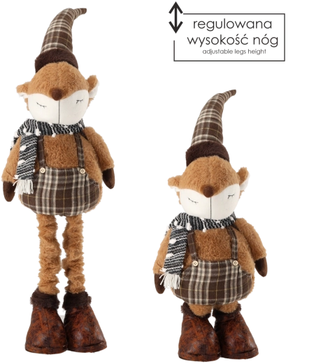Die Beine mit Teleskopmechanismus ermöglichen eine schnelle Anpassung an verschiedene Plätze – von Regalen und Kommoden bis hin zu weihnachtlichen Ecken im Wohnzimmer. Die traditionelle Farbgebung und der fuchsige Charme verleihen dem Interieur Behaglichkeit und festlichen Zauber.