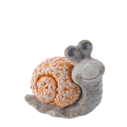 Das orangefarbene Schneckenhaus mit Blumenmuster und der steinartige Körper wirken natürlich und schmücken jedes Beet oder jede Terrassenecke.