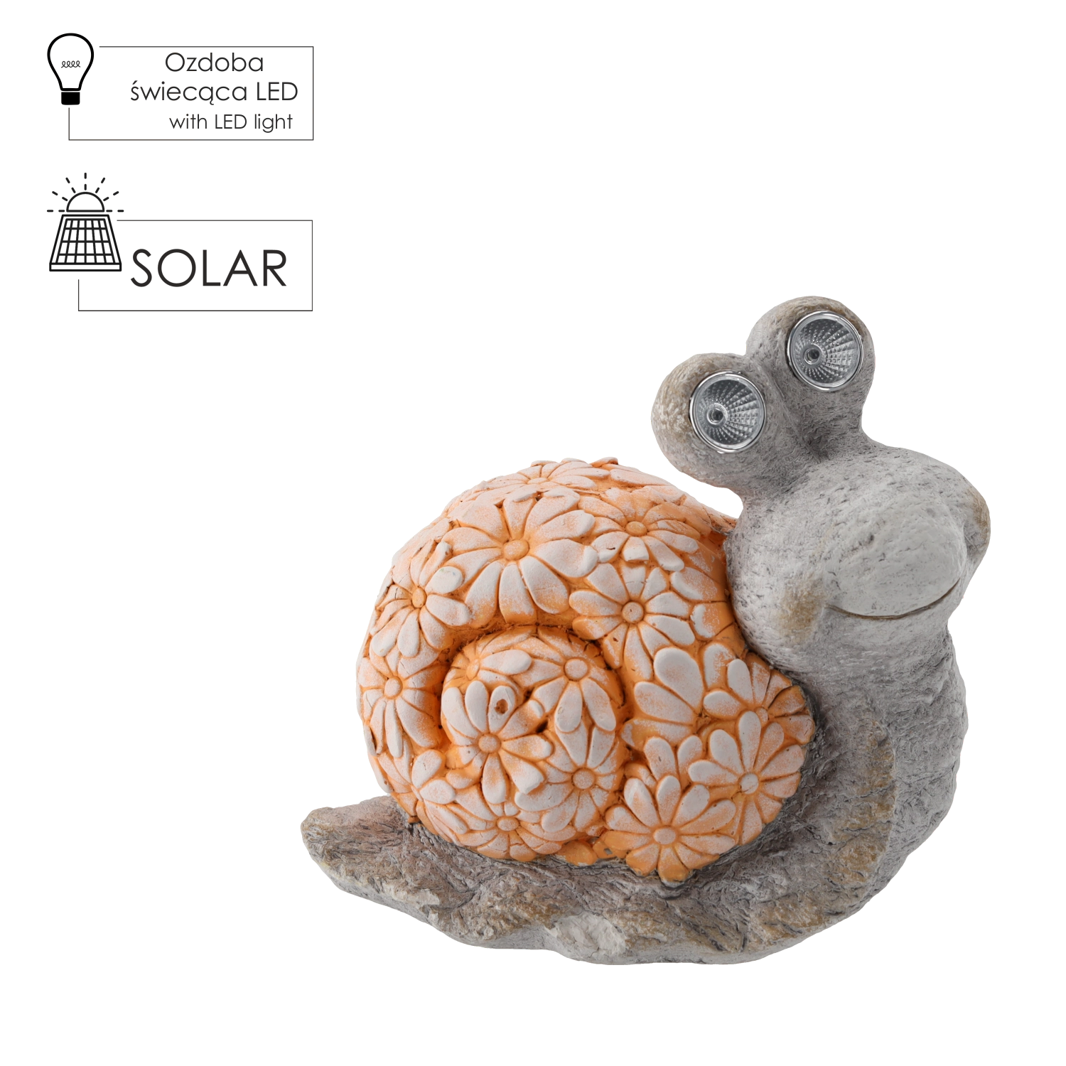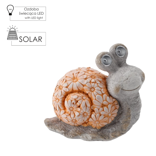 Niedliche Gartenfigur einer Schnecke mit Solarbetrieb und LED-Beleuchtung in den Augen, die Ihrer Garten-, Terrassen- oder Balkonumgebung eine angenehme Atmosphäre verleiht. Dank automatischem Einschalten bei Dämmerung und wetterbeständiger Ausführung ist sie ein dekoratives wie praktisches Element – ganz ohne Kabel.