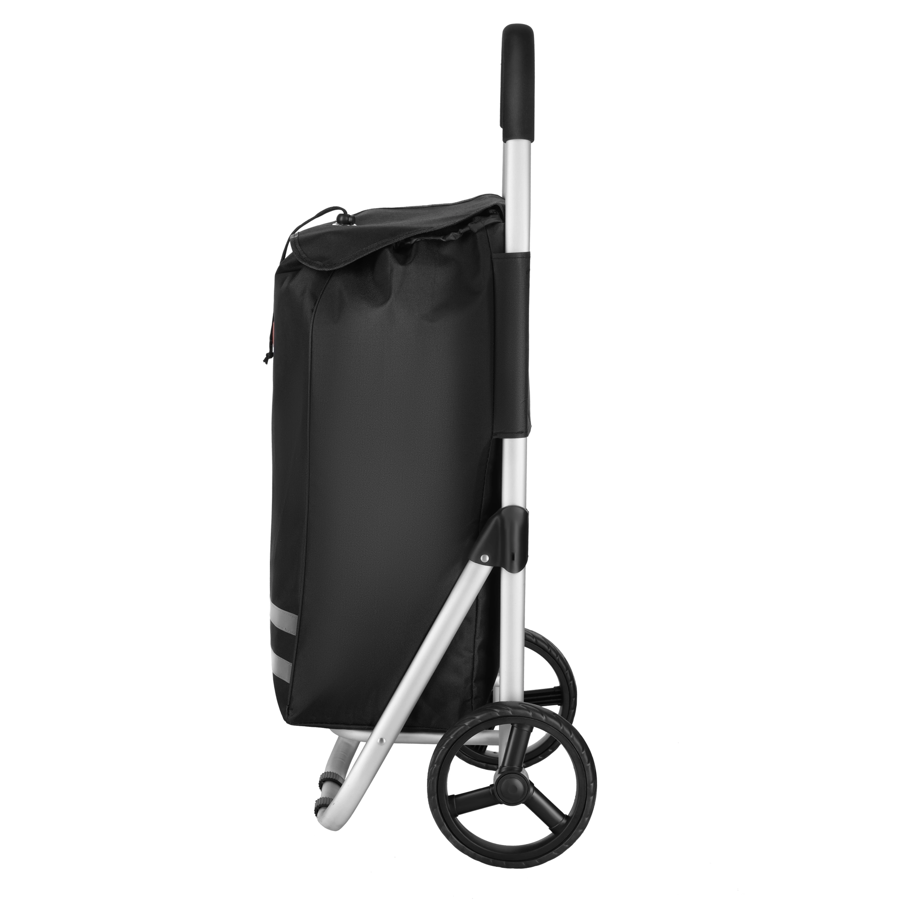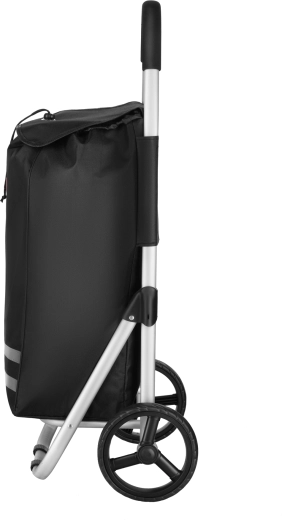 Dank der großen 20-cm-Räder lässt sich der Wagen mühelos über Gehwege, Pflaster und zwischen Regalen führen. Der schaumstoffgepolsterte Griff ist auch bei voller Beladung komfortabel. Eine äußere Reißverschlusstasche für Kleinigkeiten und reflektierende Elemente für bessere Sichtbarkeit fehlen ebenfalls nicht.