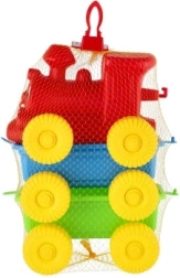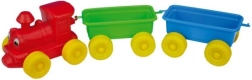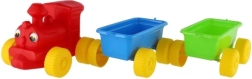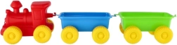 Dieser bunte Plastikzug mit zwei Waggons in 60 cm Länge ist das perfekte Spielzeug für Kleinkinder, ideal für das Spielen im Sand oder zuhause.