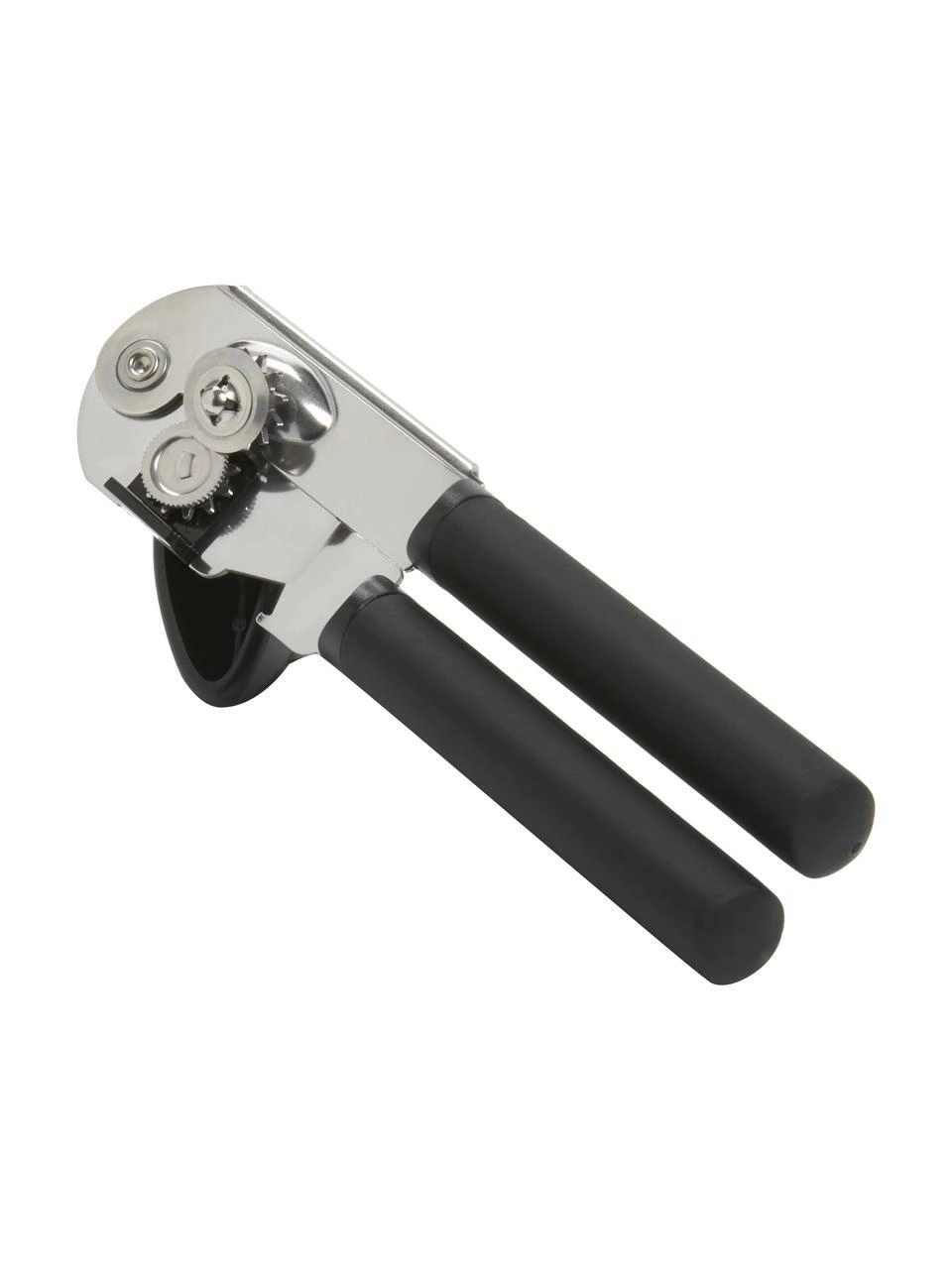 Zuverlässiger Dosenöffner mit einem scharfen Schneidrad aus Edelstahl, bequemen, rutschfesten Griffen und einem großen Drehmechanismus für müheloses, leichtes Öffnen. Inklusive integriertem Kapselheber.