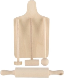 Ein niedliches Holzset für kleine Köchinnen und Köche enthält ein Schneidebrett, ein Nudelholz und einen Fleischklopfer in kompakter Größe von 20 cm. Alles besteht aus hochwertigem, glatt verarbeitetem Holz und ist sicher für das kindliche Spiel. Fördert die Feinmotorik, das Rollenspiel und die Kreativität in der Kinderküche.