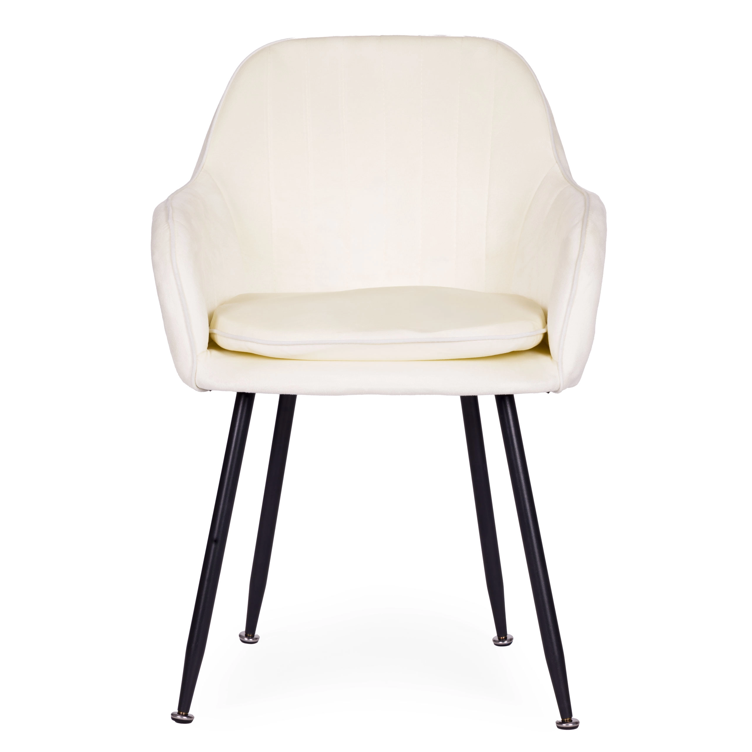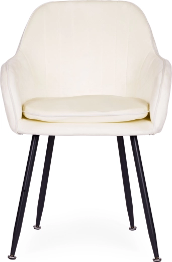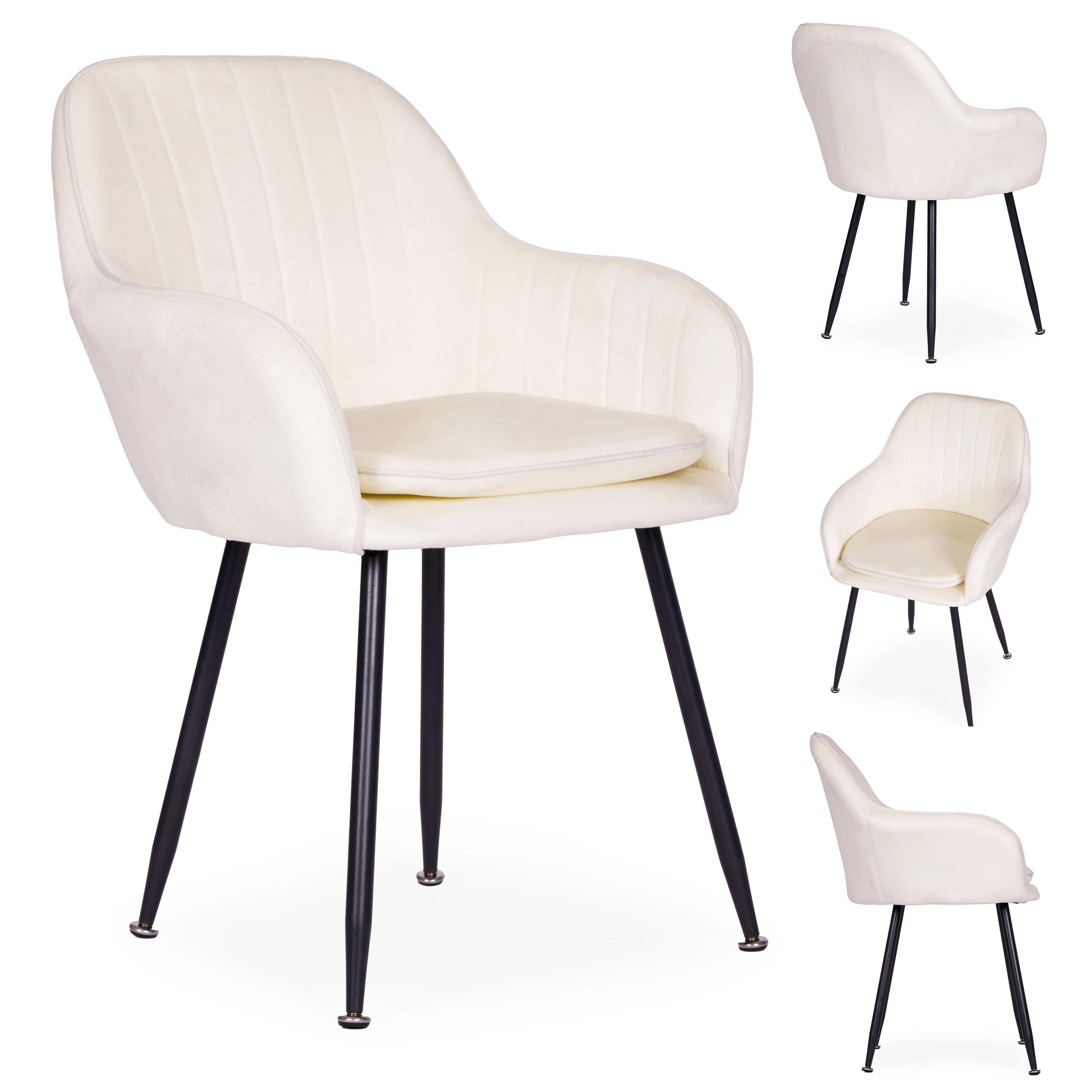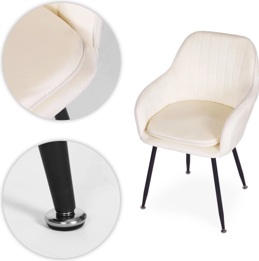 Bringen Sie zeitlose Eleganz in Ihr Zuhause. Der cremefarbene Samtstuhl ModernHome verbindet ein luxuriöses Erscheinungsbild mit hervorragendem Sitzkomfort dank weicher Sitzfläche mit Schaumfüllung und ergonomischer Rückenlehne mit integrierten Armlehnen. Der Samt mit zartem Glanz wirkt zugleich gemütlich und repräsentativ.