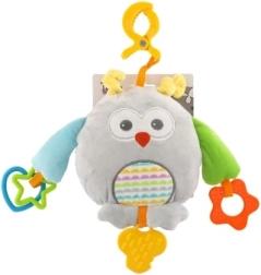 Diese Plüsch-Eule ist der ideale Begleiter unterwegs und zu Hause. Dank des universellen Clips befestigen Sie sie ganz einfach am Kinderwagen, Autositz oder am Bettrand. Der weiche Körper, vielfältige Texturen und kräftige Farben regen auf natürliche Weise den Seh-, Tast- und Hörsinn des Babys an.
