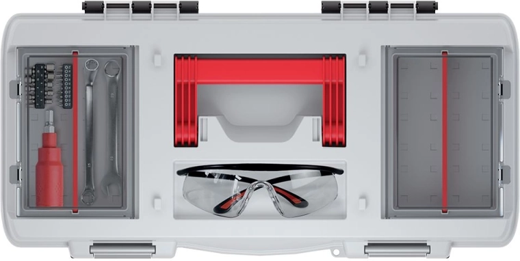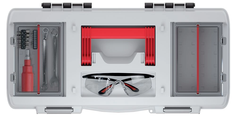 Dank der herausnehmbaren Einlage passen Sie die Innenaufteilung leicht an Ihre Bedürfnisse an. Die robuste Ausführung und die praktischen Maße 548 × 274 × 286 mm ermöglichen einen bequemen Transport sowie die ordentliche Aufbewahrung von Werkzeugen und Zubehör.