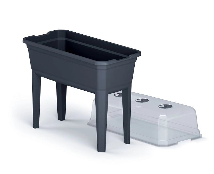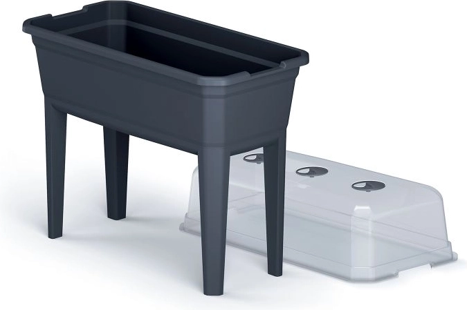 Entdecken Sie komfortables und stilvolles Gärtnern mit dem hohen Pflanzkasten RESPANA Planter Ecoline Set. Der hochwertige, wetterfeste Kunststoff ist leicht zu reinigen und das moderne anthrazitfarbene Design macht auf jedem Balkon und jeder Terrasse eine gute Figur. Der praktische Deckel mit Lüftungsöffnungen fördert schnelleres Keimen und ein gesundes Wachstum der Setzlinge, während die erhöhte Konstruktion Ihren Rücken schont.