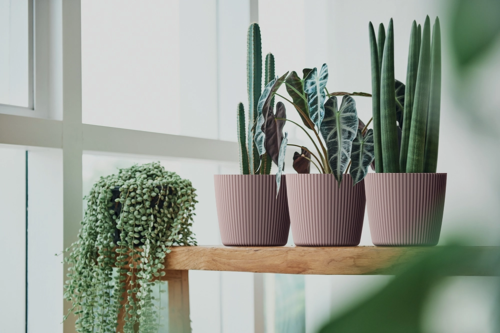 Das elegante Ozeanblau harmoniert mit verschiedenen Wohnstilen und setzt Pflanzen auf Regal, Fensterbrett, Balkon und Terrasse in Szene.
