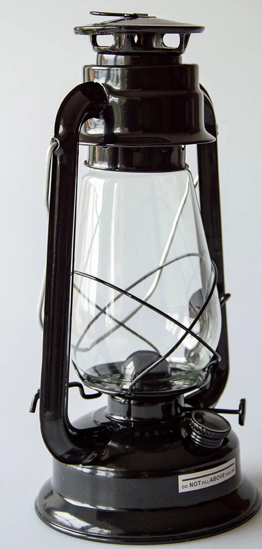 Praktische und zuverlässige Petroleumlampe mit einer Höhe von 30 cm in elegantem Schwarz, ideal als Lichtquelle im Außenbereich, für industrielle Anwendungen oder zur Absicherung von Baustellen. Dank der Dochtbreite von 12 mm bietet sie eine stabile Flamme und lange Brenndauer.