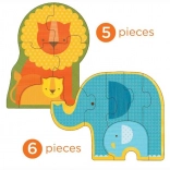 Wir präsentieren Petit Collage Erste Puzzle Safari-Babys, die ideale Wahl für kleine Entdecker ab 2 Jahren. Dieses Set enthält vier Tiere, die Ihr Kind nach und nach mit Puzzles von 3 bis 6 Teilen entdecken wird.