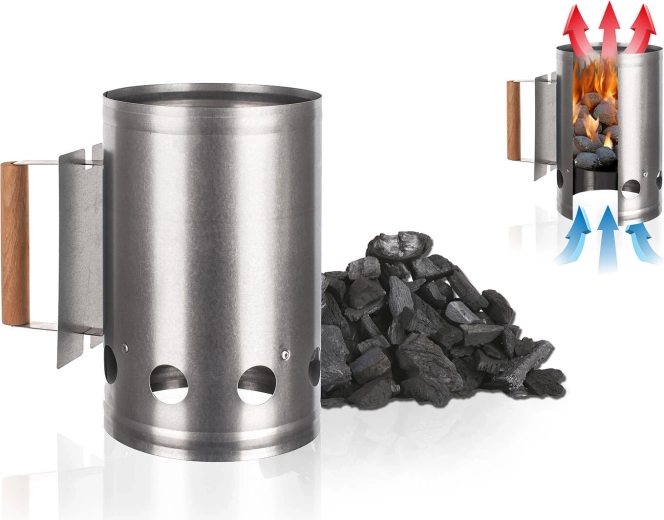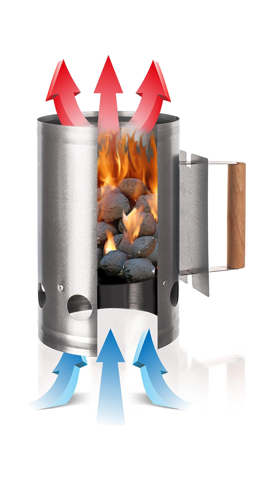 Kein langes Warten mehr auf glühende Kohlen. Dieser verzinkte Anzündkamin mit 16,5 cm Durchmesser und 28 cm Höhe nutzt den Kamineffekt für schnelles Durchbrennen und Aufglühen von Kohle und Briketts. Dank der durchdachten Lüftungsöffnungen strömt die Luft gleichmäßig, was das Entzünden beschleunigt und den Verbrauch von Anzündhilfen reduziert.