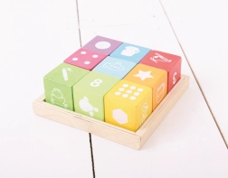 • Praktische Verpackung: 9 Würfel + Holztablett für übersichtliche Aufbewahrung.