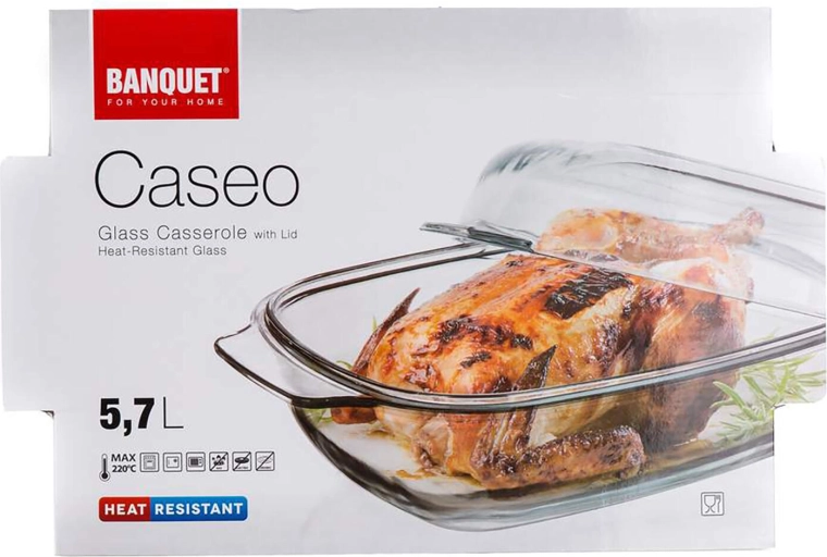Der universelle Glasbräter CASEO mit einem Gesamtvolumen von 5,7 l (3,7 l Schale + 2 l Deckel) ist ideal zum Braten von Fleisch, Gemüse und zum Überbacken von Nudeln. Er bietet hohe Hitzebeständigkeit von -25 °C bis +220 °C, lange Lebensdauer, hygienische Unbedenklichkeit und einfache Pflege einschließlich Spülmaschinenreinigung.