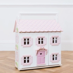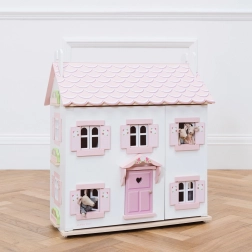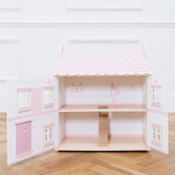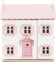 Das luxuriöse dreistöckige Haus in romantischem Rosa-Weiß besticht durch ein funkelndes, geriffeltes Dach, Herzchen und farbenfrohe Innendekorationen in jedem Raum. Öffnende Fenster und Fensterläden laden Kinder in eine Welt voller Geschichten ein, während die stabile Holzkonstruktion eine lange Lebensdauer garantiert. Das Haus wird ohne Ausstattung geliefert, sodass Kinder es mit Möbeln und Figuren nach ihrem eigenen Stil gestalten können.