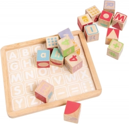 Jede Seite des Bausteins bietet ein anderes Motiv – Alphabet, Ziffern, Formen und Symbole. Kinder üben ganz natürlich das Erkennen und Zusammensetzen von Wörtern sowie einfache Rechenaufgaben.