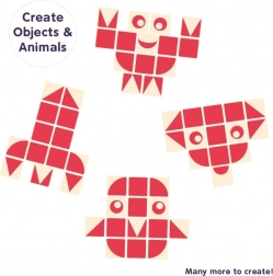 Abgerundete Kanten der Bausteine und der Ablageplatte sorgen für eine komfortable und sichere Handhabung. Das Spielzeug ist plastikfrei, hergestellt aus FSC-zertifiziertem Holz mit Fokus auf ethische Produktion und Nachhaltigkeit. Das Set unterstützt die Entwicklung von kognitiven Fähigkeiten, räumlicher Vorstellungskraft und Sprachkompetenz.
