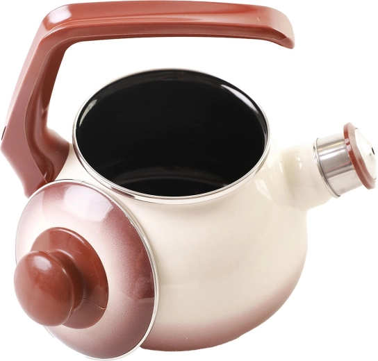 Elegante Teekanne im Cappuccino-Design, die beigen und braunen Emaille mit einem sanften Farbverlauf kombiniert. Dank des Fassungsvermögens von 1,7 l und des Durchmessers von 18 cm ist sie ideal für den täglichen Gebrauch. Die innere hochbeständige braune Emaille ist unempfindlicher gegenüber Verschmutzungen und überzeugt alle, die ein dezentes und zeitloses Erscheinungsbild bei Küchengeschirr bevorzugen.