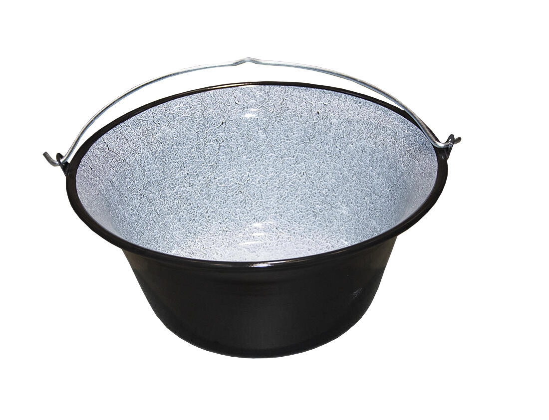 Dieser geräumige 22-Liter-Kessel besteht aus emailliertem Stahlblech, das korrosionsbeständig und leicht zu reinigen ist. Die schwarze Emaillierung verleiht dem Kessel einen klassischen Look und erleichtert zugleich die Pflege nach dem Kochen über offenem Feuer.