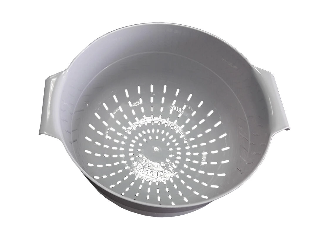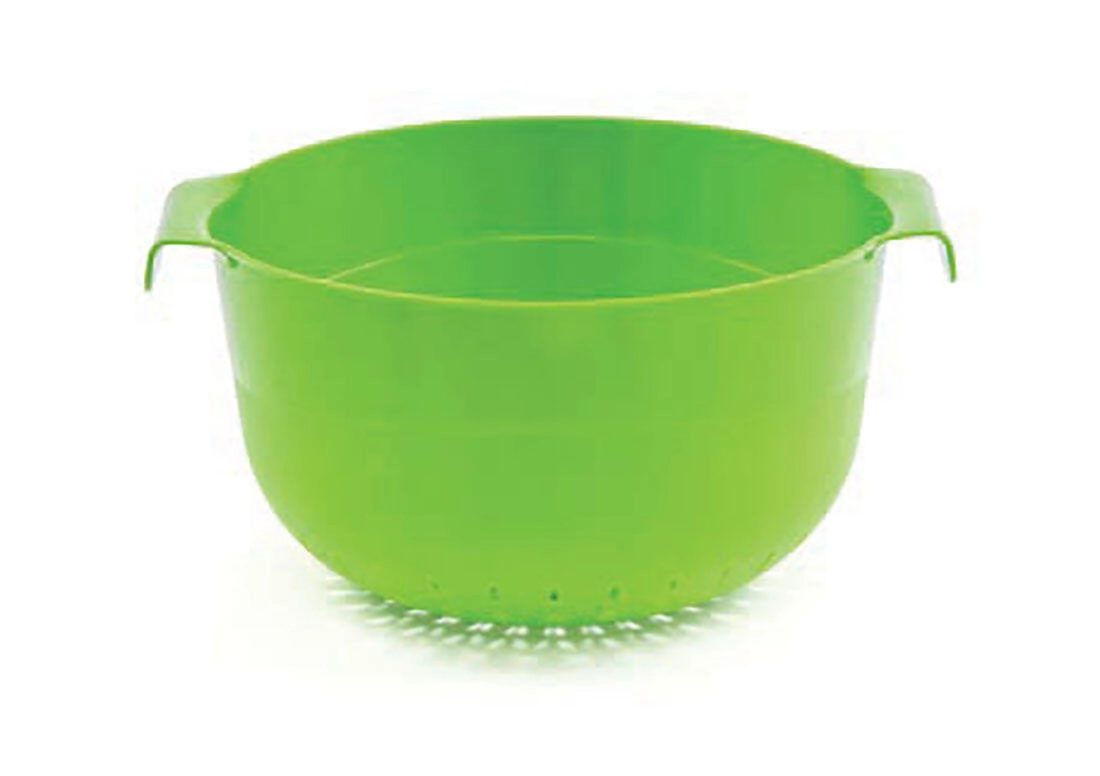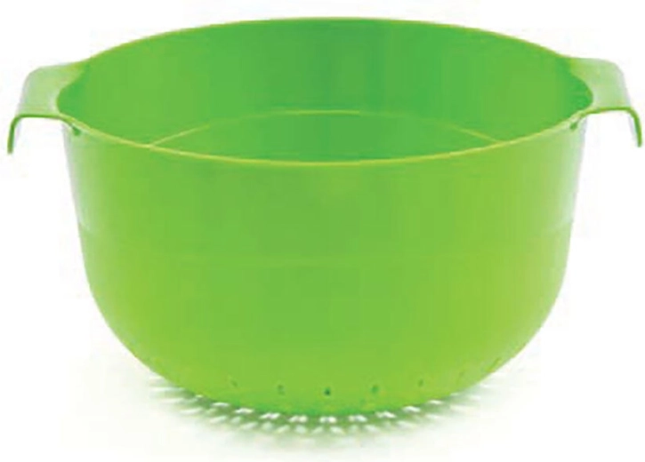 Dieses vielseitige Sieb/Schüssel-Set aus hochwertigem Kunststoff erleichtert das Abseihen von Pasta, Reis oder Gemüse sowie das schnelle Abspülen von Obst. Die breite Form und praktischen Griffe gewährleisten einen bequemen Halt auch bei höherer Belastung, während die durchdachte Perforation einen effizienten Wasserablauf ermöglicht.