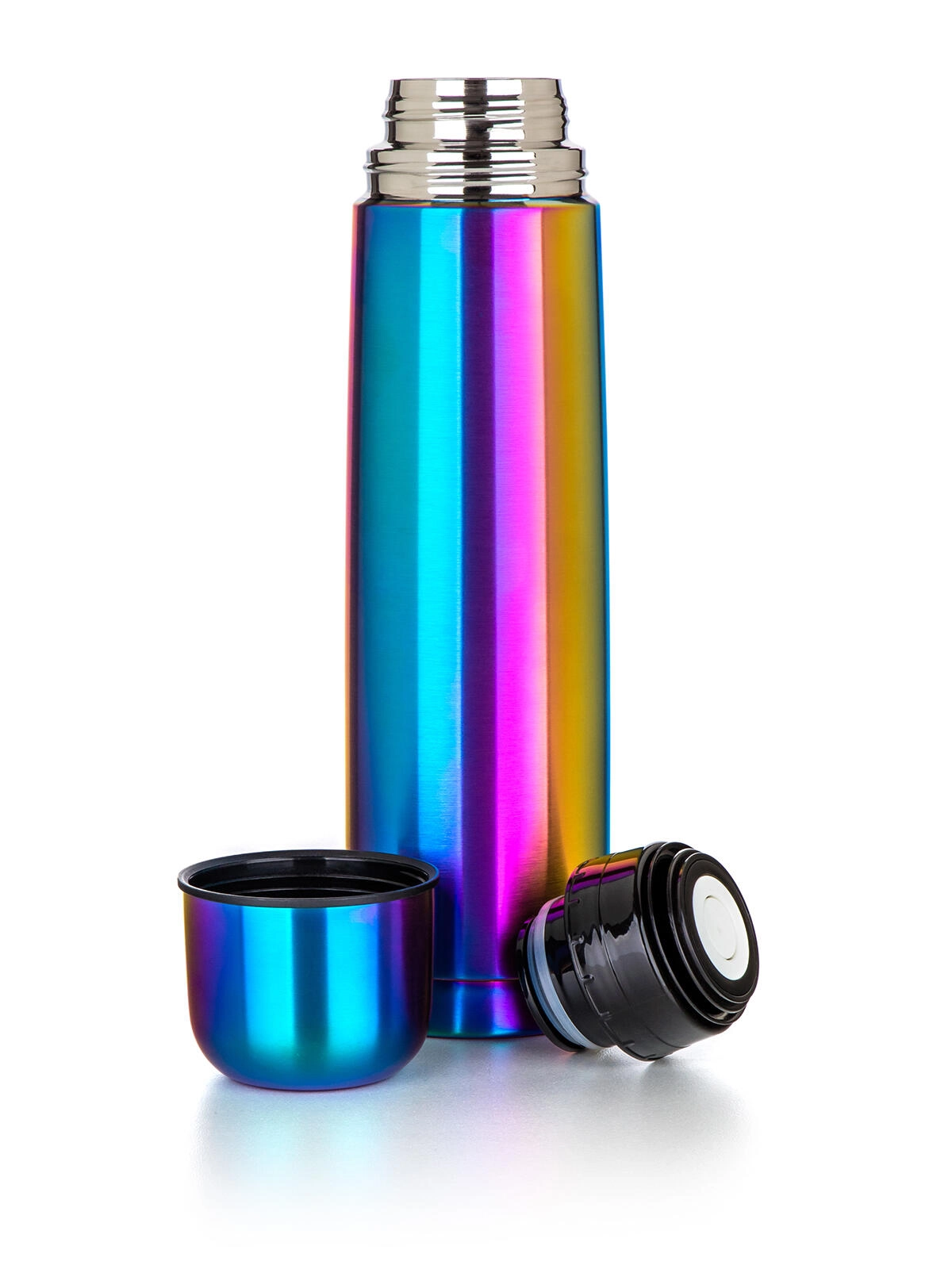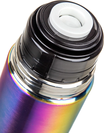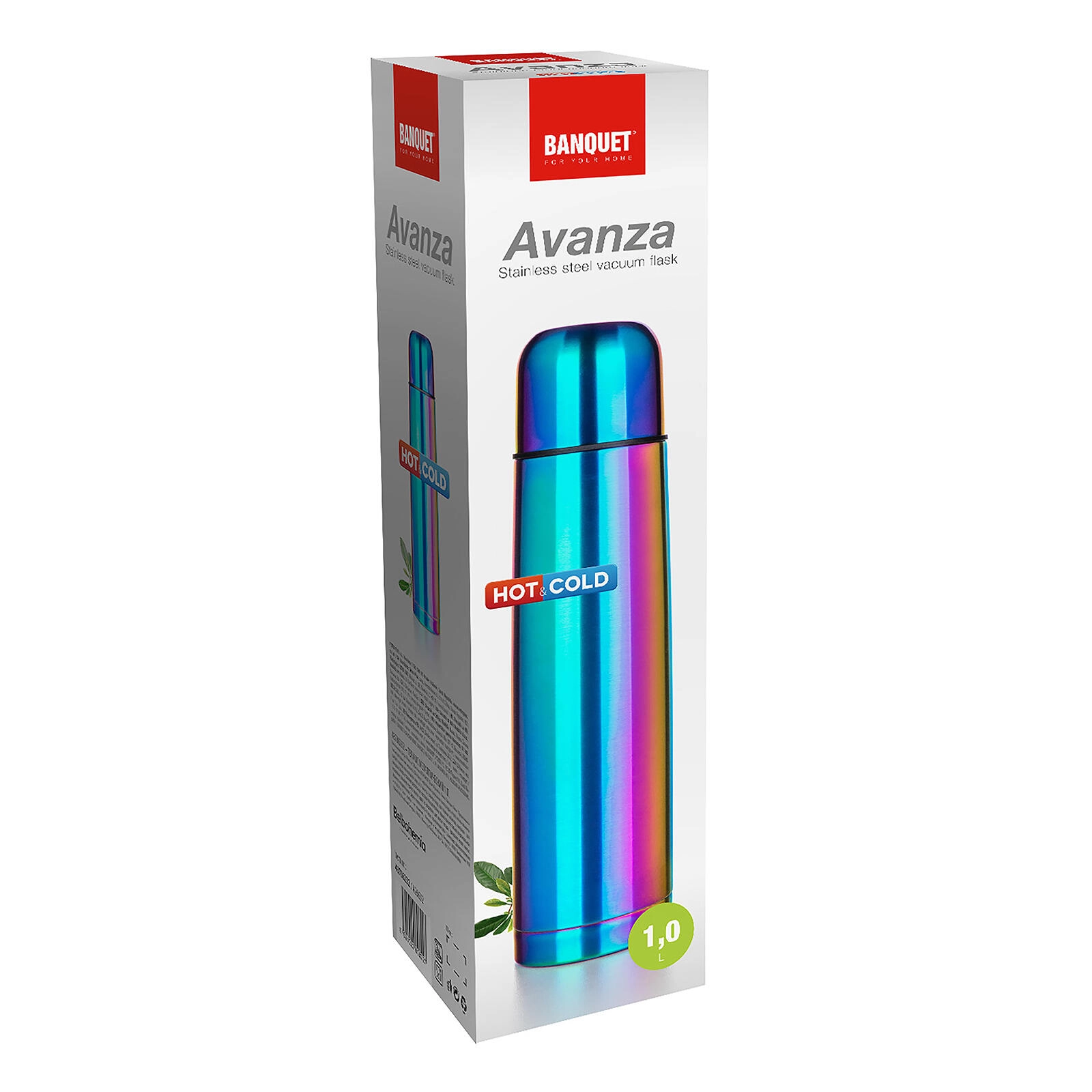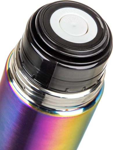 Die AVANZA Thermosflasche mit 1 Liter Volumen ist der ideale Begleiter für Arbeit, Schule und Ausflüge. Dank der doppelwandigen Vakuumisolierung und der Volledelstahl-Ausführung (Innen- und Außenfläche aus Edelstahl 201) hält sie die Temperatur Ihres Getränks zuverlässig über lange Zeit. Das matte, regenbogenfarbene Finish verleiht der Flasche einen markanten und eleganten Look.