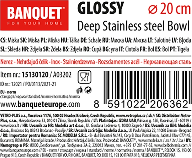 Edelstahl-Tiefschüssel Glossy 20 cm