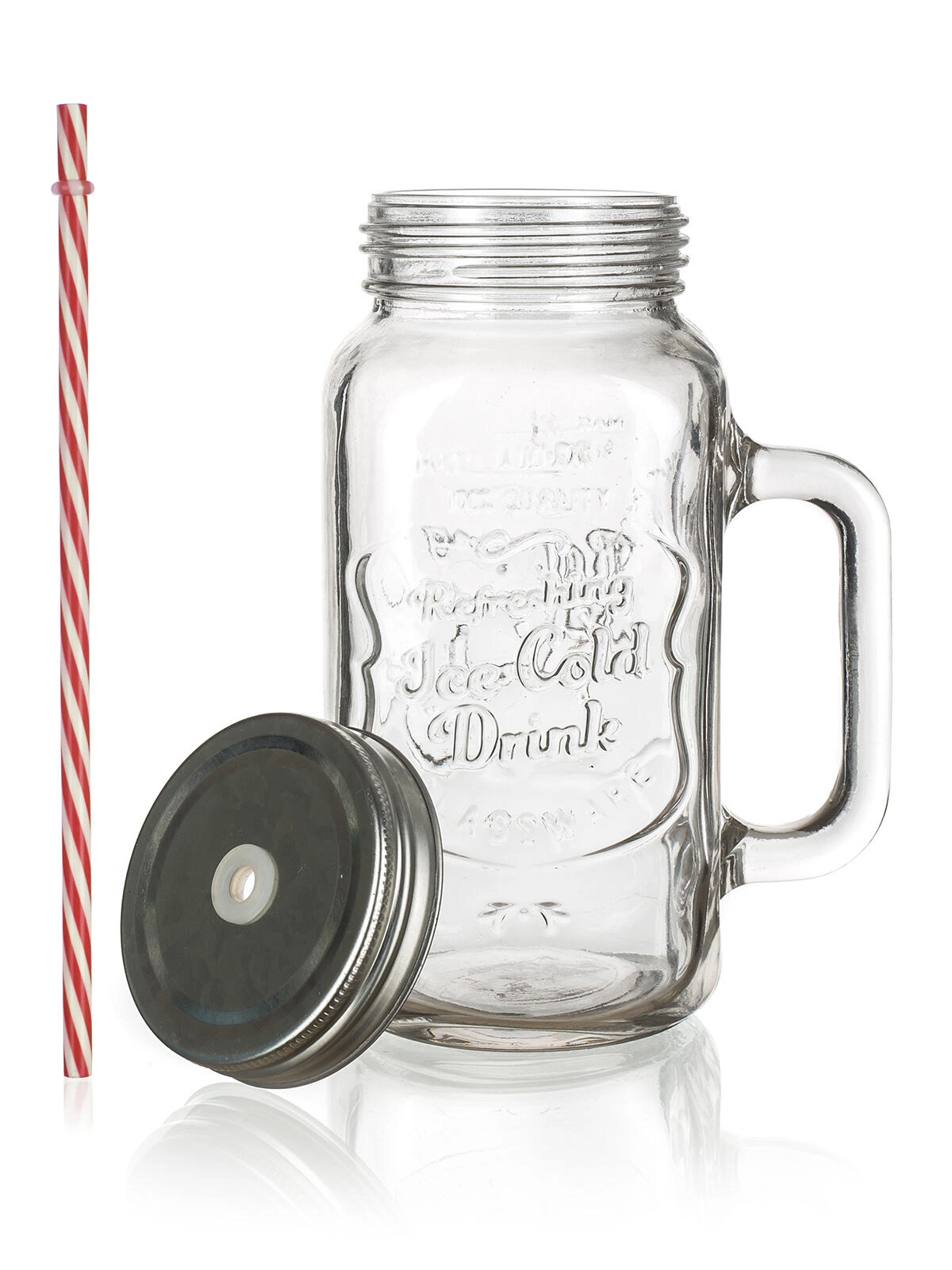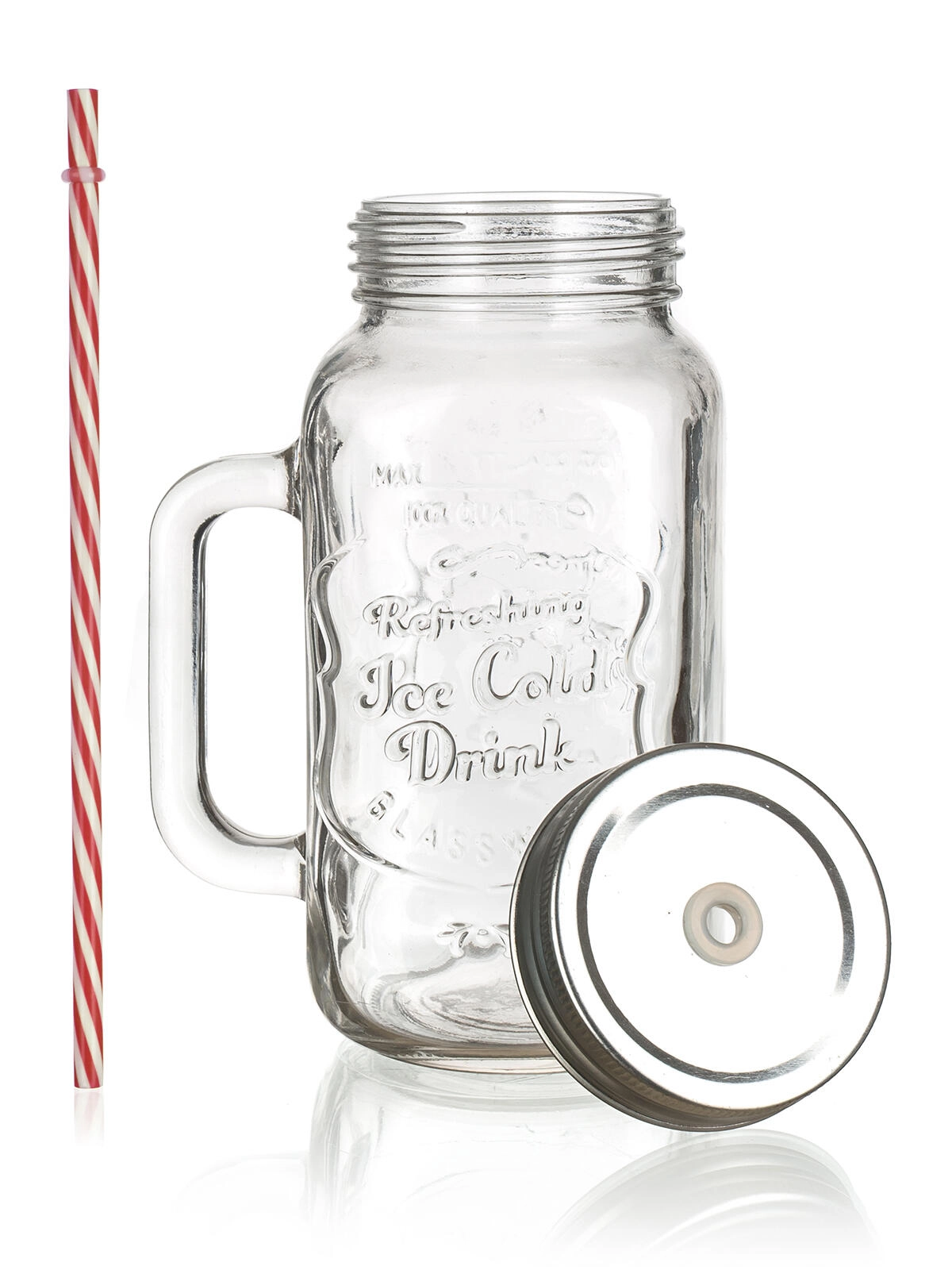 • Robuste Materialien – Glas, Metalldeckel und Kunststofftrinkhalm zur mehrfachen Verwendung.