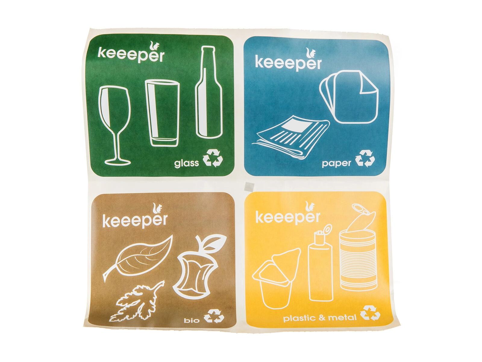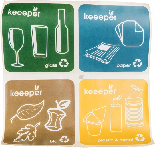 Im Lieferumfang sind Etiketten für Glas, Papier, Bio sowie Kunststoff + Metall enthalten. Markieren Sie den Eimer und behalten Sie beim Trennen den Überblick.