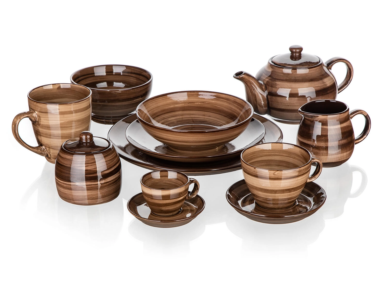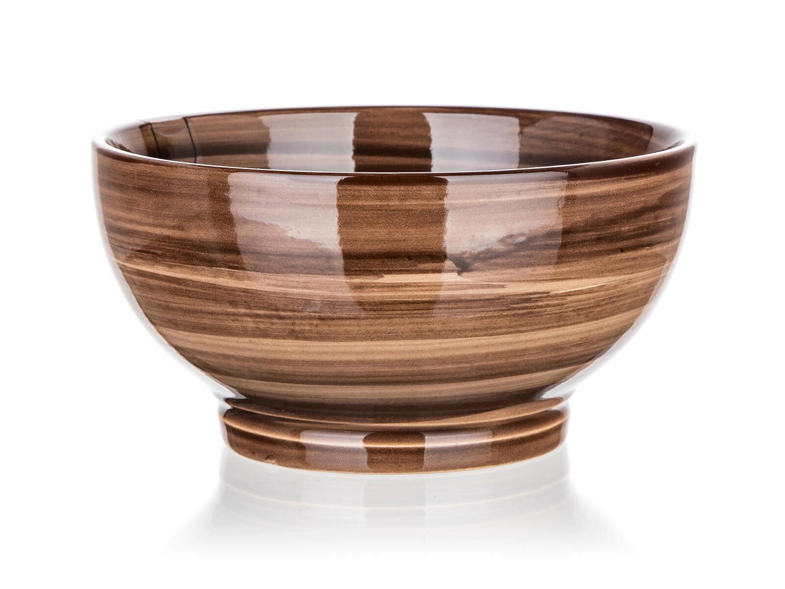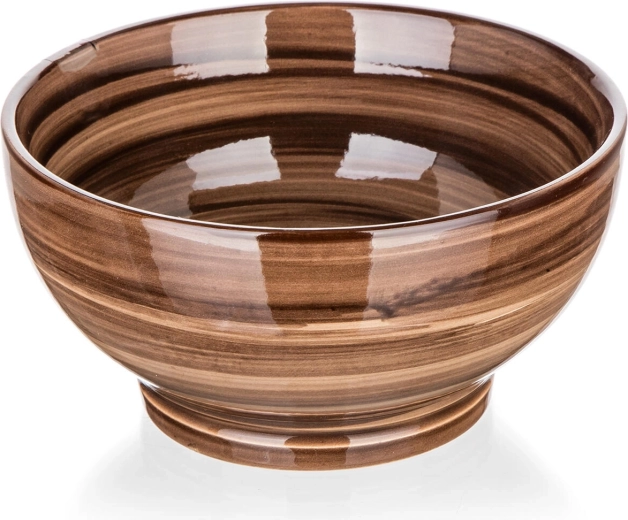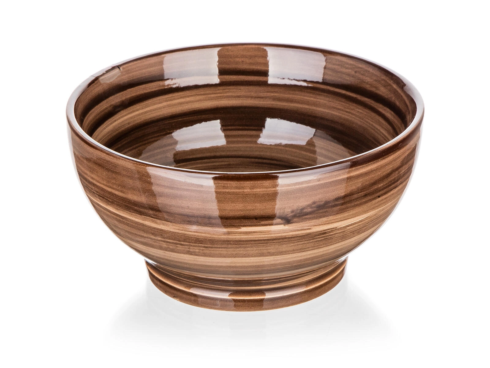 Die stilvolle Keramikschale PALAS mit einem Durchmesser von 14,3 cm und einem Volumen von 610 ml ist ideal für Frühstück, Suppen und Snacks. Dank der robusten Glasur lässt sie sich leicht reinigen und ist spülmaschinen- und mikrowellengeeignet. Die elegante braune Streifenoptik verleiht Ihrem Tisch eine natürliche Note.
