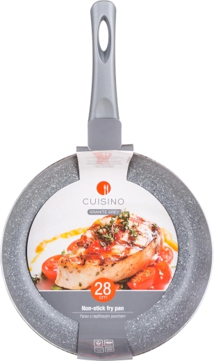 Diese Aluminium-Pfanne CUISINO Granite Grey mit einem Durchmesser von 28 cm bietet eine zweilagige Antihaftbeschichtung, dank der Speisen nicht anbrennen und die Reinigung schnell und einfach ist. Der Außenbereich mit hitzebeständigem Lack erhöht die Widerstandsfähigkeit im täglichen Gebrauch.