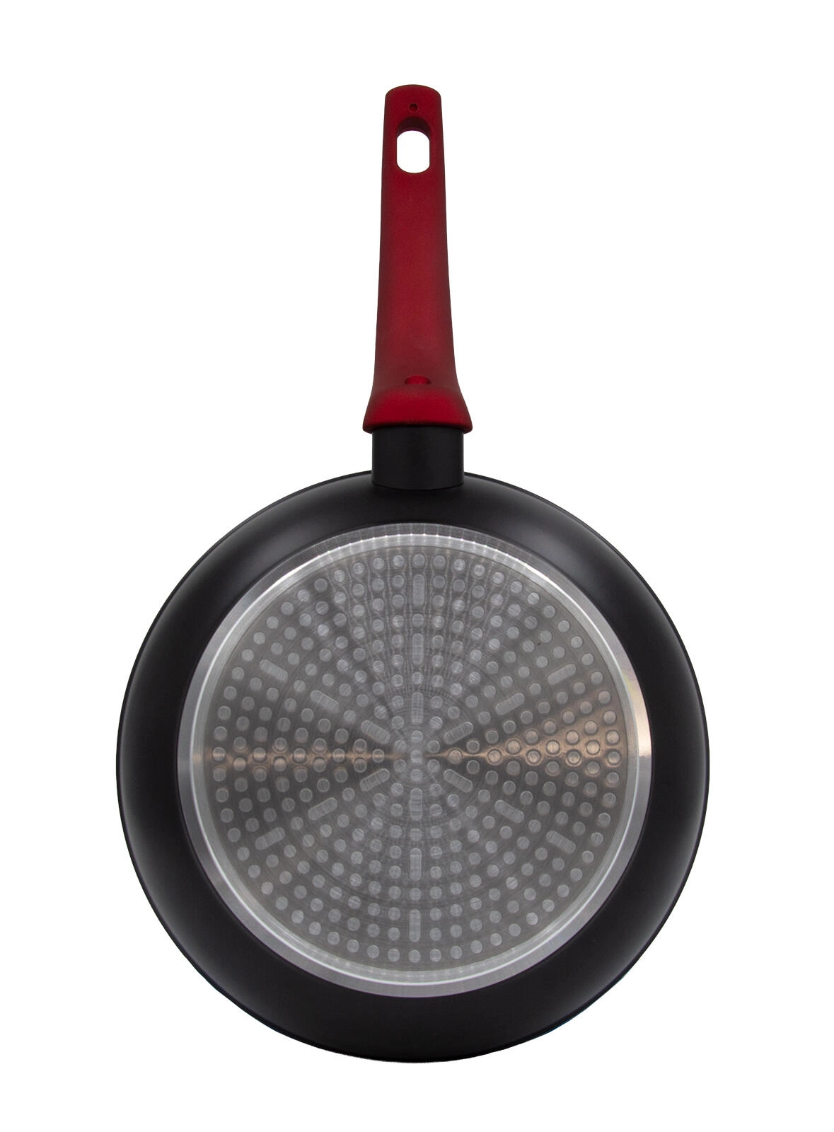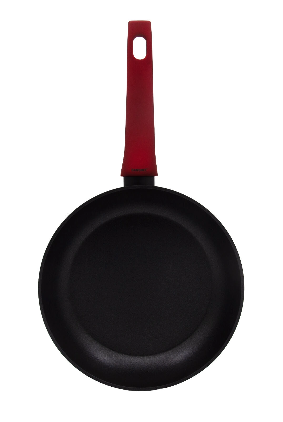 Die Konstruktion aus Druckguss-Aluminium gewährleistet Beständigkeit gegen Stöße und Verformungen. Der ergonomische Soft‑Touch‑Griff liegt gut in der Hand und sorgt für einen sicheren Halt. Die Pfanne ist mit allen Kochfeldern kompatibel, einschließlich Induktion.