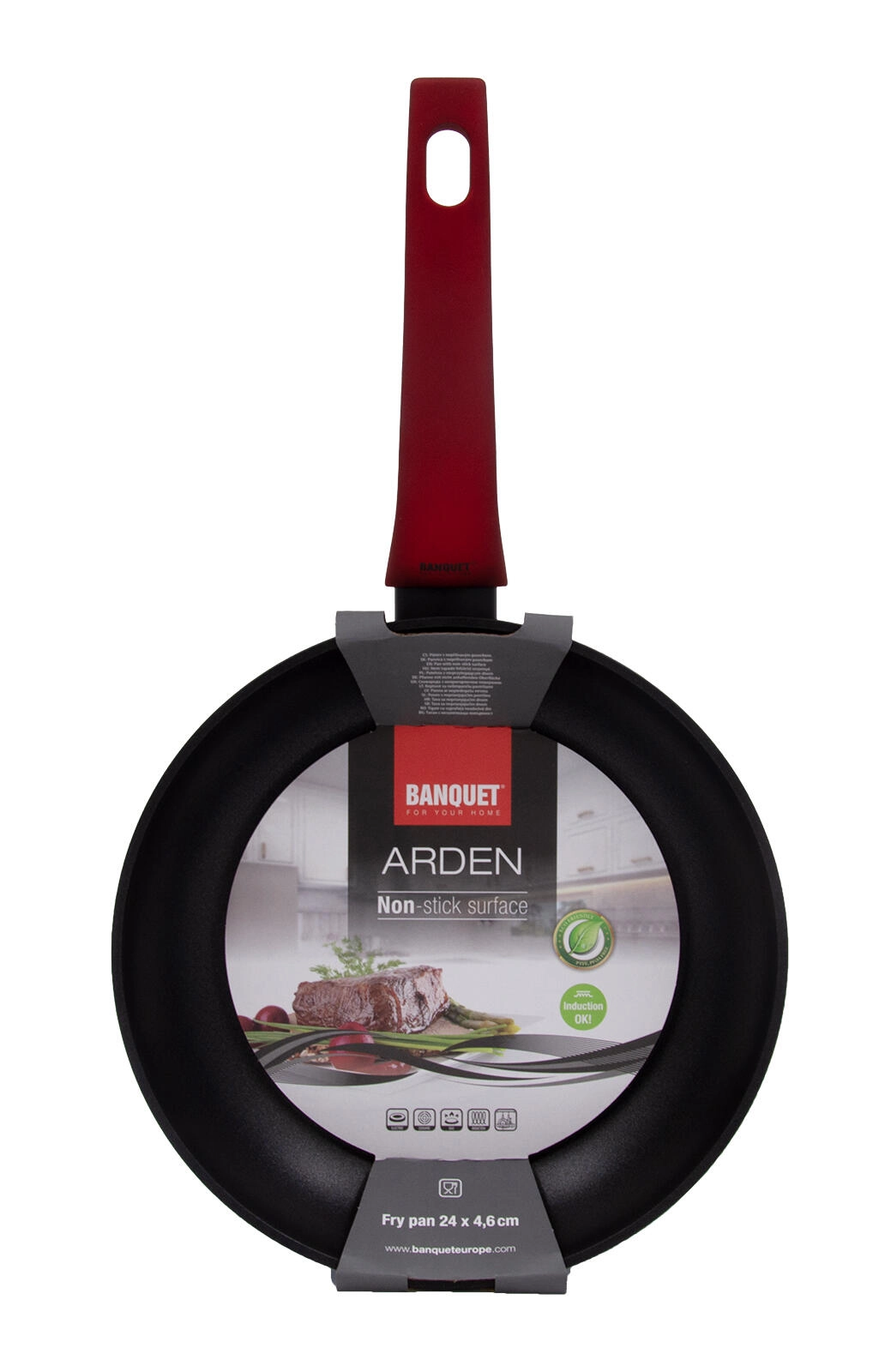 Die gegossene Aluminiumpfanne ARDEN in elegantem Schwarz ist ideal für den täglichen Einsatz. Ihre harte und widerstandsfähige Antihaftoberfläche verhindert das Anhaften von Speisen und erleichtert die Reinigung. Dank der hohen Wärmeleitfähigkeit heizt sie schnell auf, verteilt die Wärme gleichmäßig und hält sie lange, was Zeit und Energie spart.